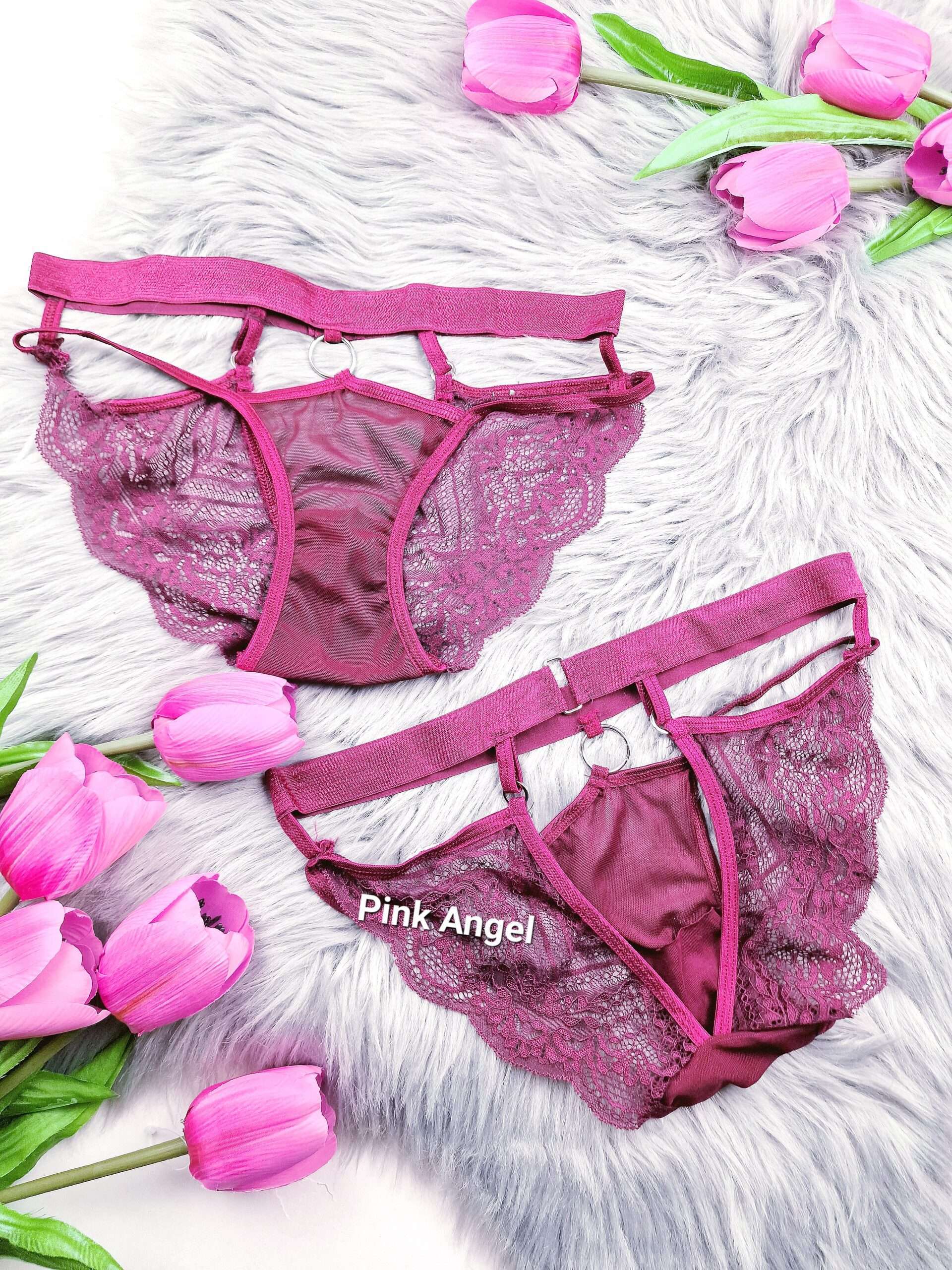 Дамски бикини, 2 броя в опаковка, с висока талия и в комбинация – дантела и тюл. С отвор на дупето.