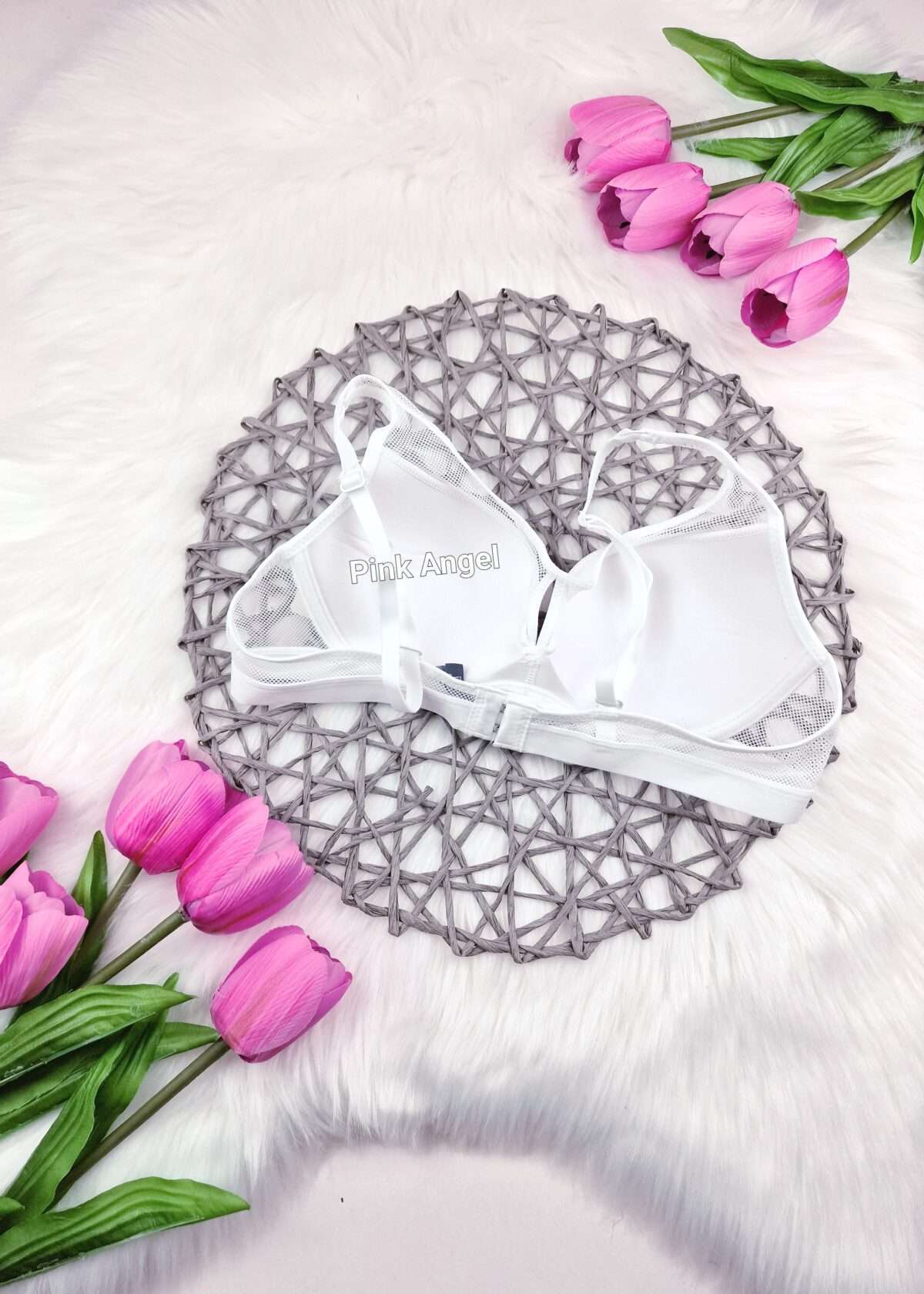 Дамски сутиен със задно, двуредово закопчаване, банели, подплънки и лек “push up” ефект. С регулиращи се презрамки. Декориран с финна мрежа.