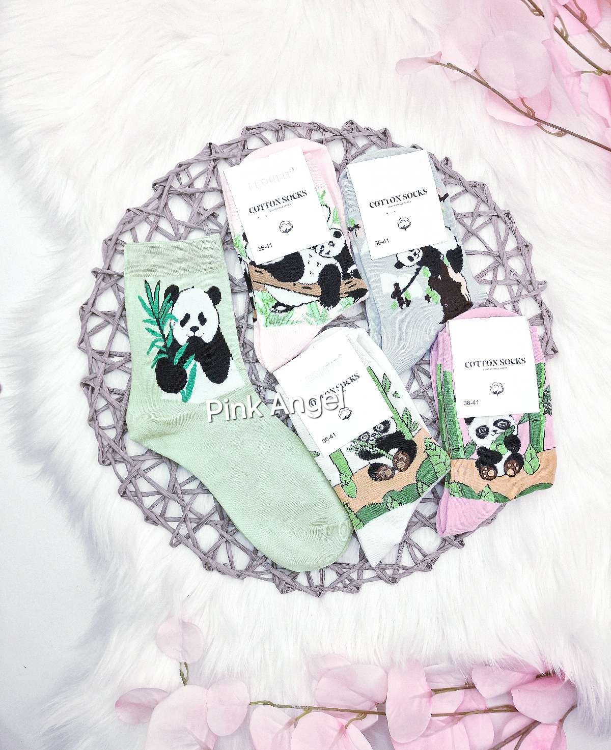 Дамски чорапи с весели мотиви – панди. Изработени са от висококачествена, еластична памучна материя.