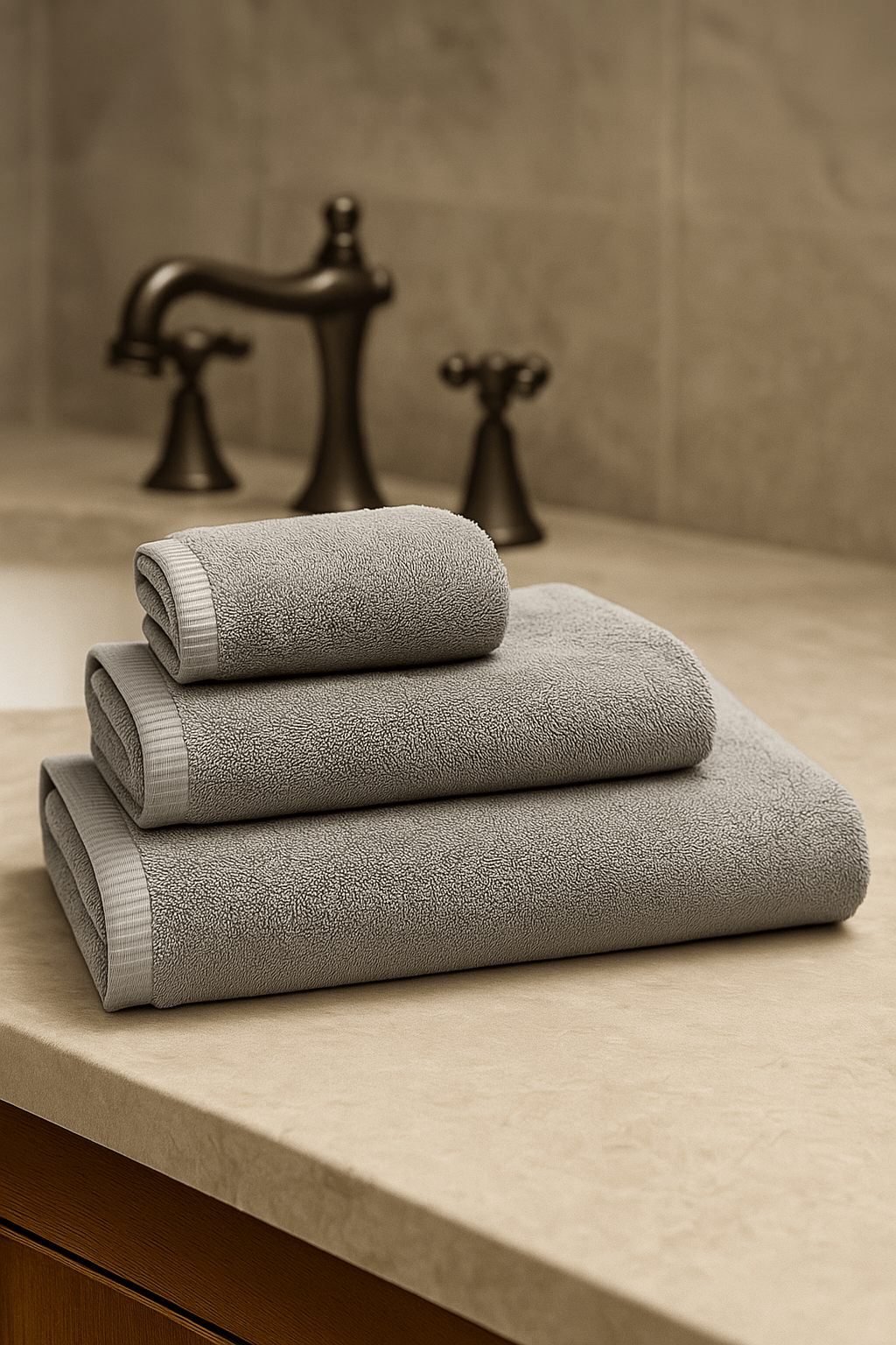 Комплект хавлии от 100% памук в сив цвят – меки и абсорбиращи.