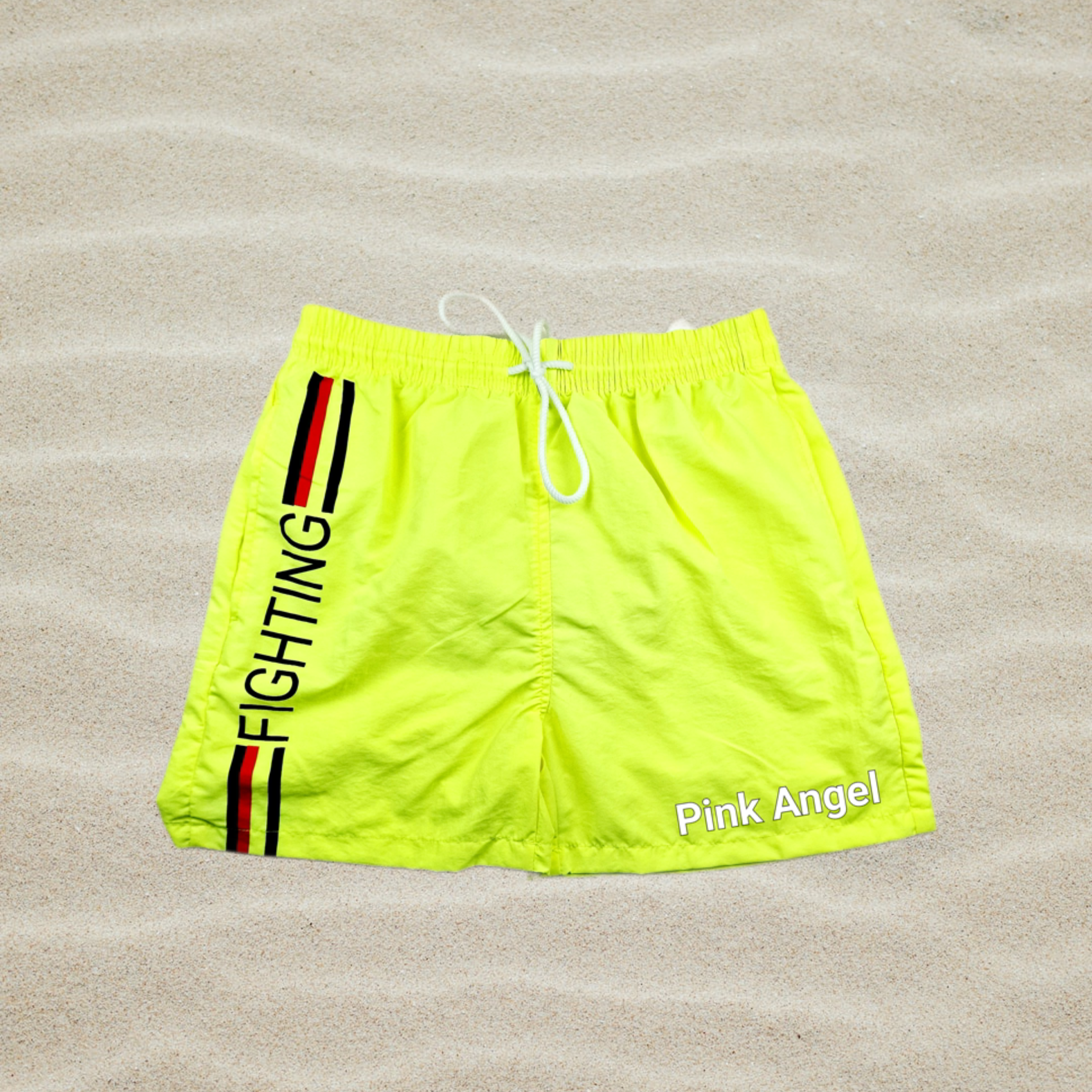 Бански от лека и бързосъхнеща материя с вътрешен мрежест банданж и ластичен колан на талията с връзки. Моделът е с 2 странични джоба. Връзката на модела е различна от тази на снимката.