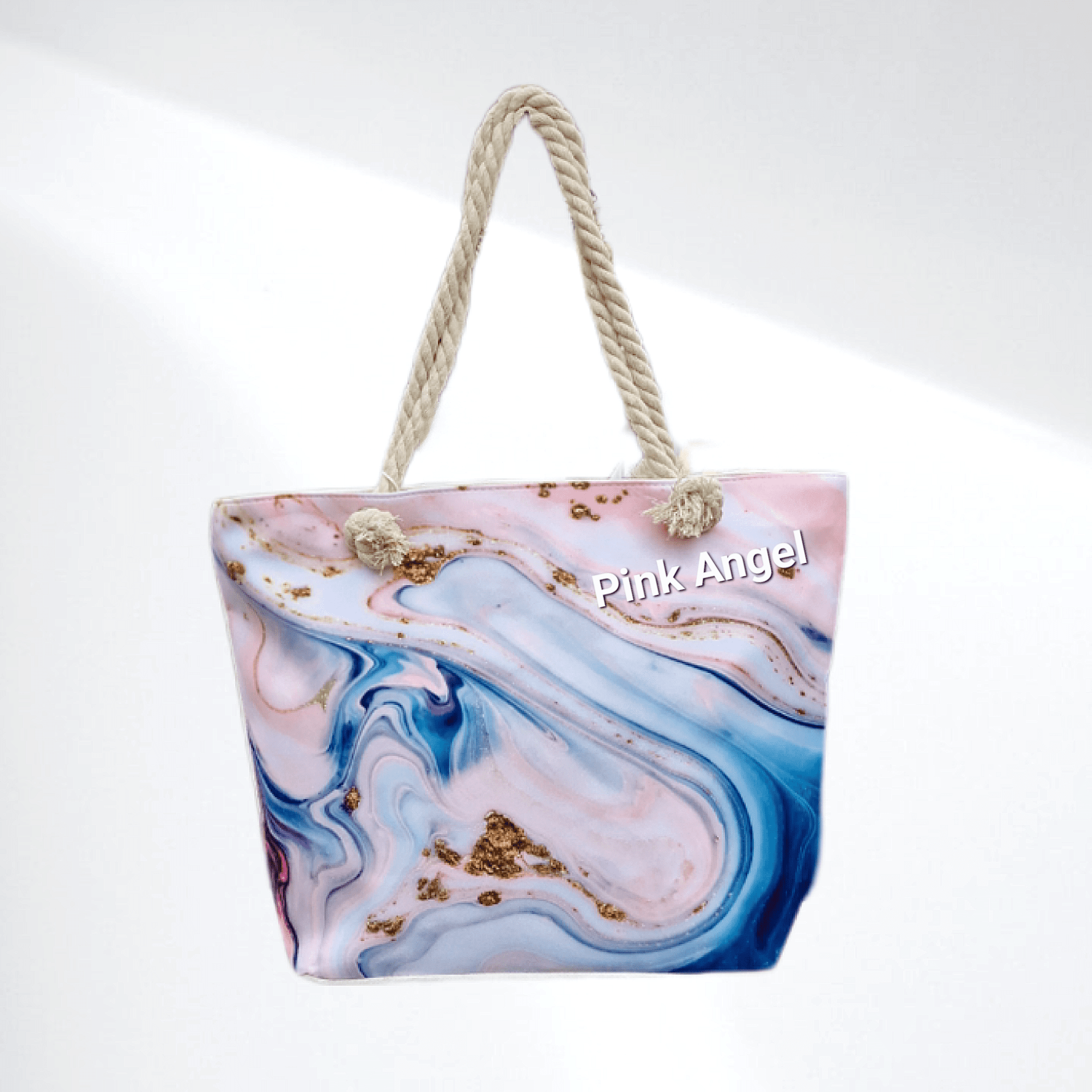 Плажна чанта с дръжки от въжета. Закопчава се с цип, хастара е от полиестер. Чантата е текстилна.