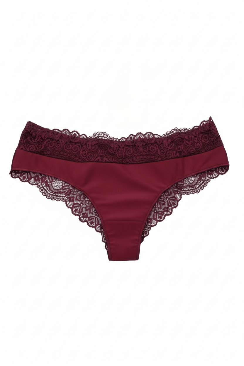 Изключително удобна бразилиана, изработена от фин микрофибър, в комбинация с дантела. Състав: 85%полиамид, 15%еластан, вътрешна част-памук. Дантелата може да бъде с дизайн, различен от този на снимката.