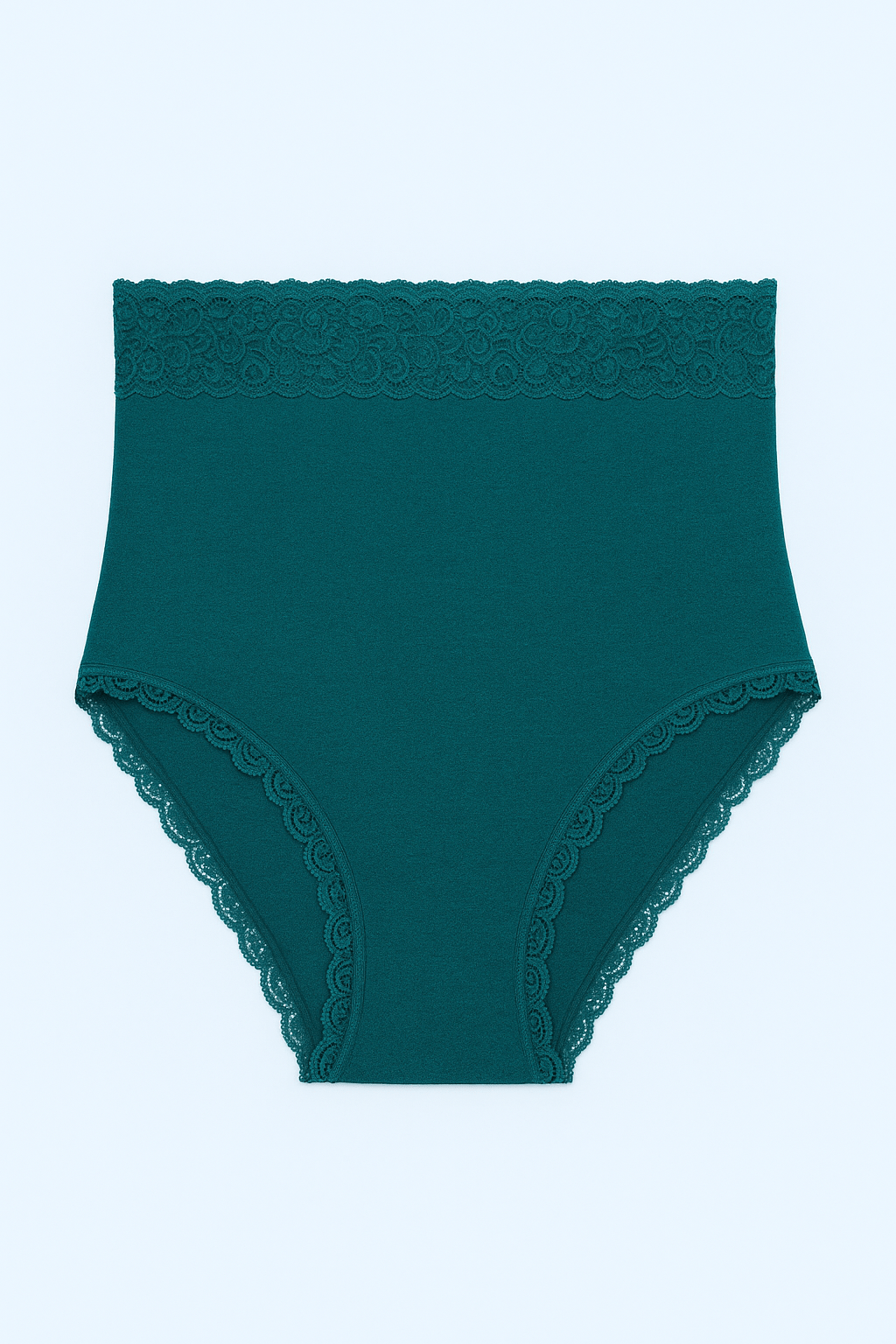 Нежната дантелена декорация придава женственост и елегантен вид, а високата талия осигурява леко оформящ ефект и допълнителна топлина.