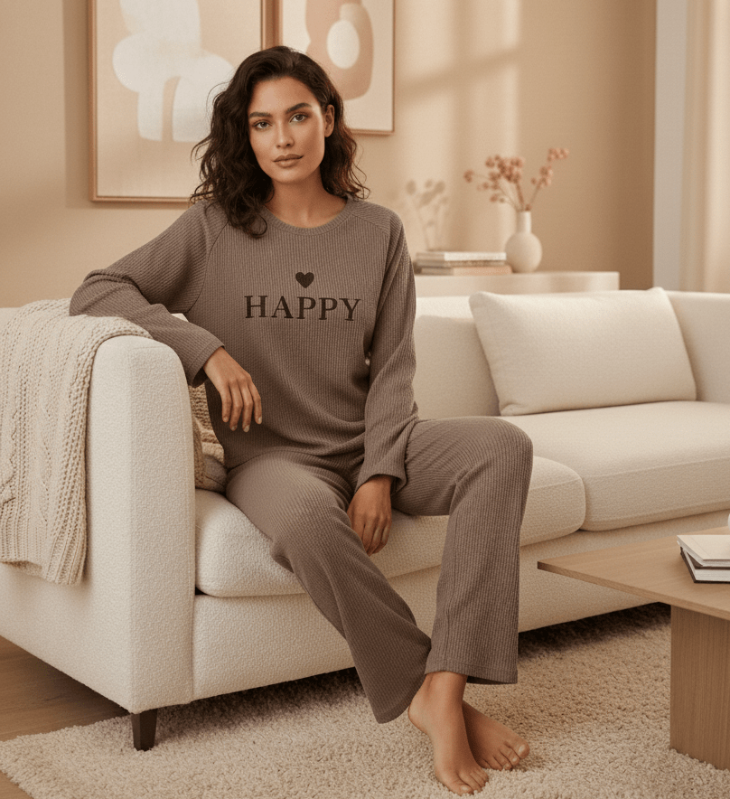 Дамска вафлена пижама с дълъг ръкав – мека, удобна и модерна.