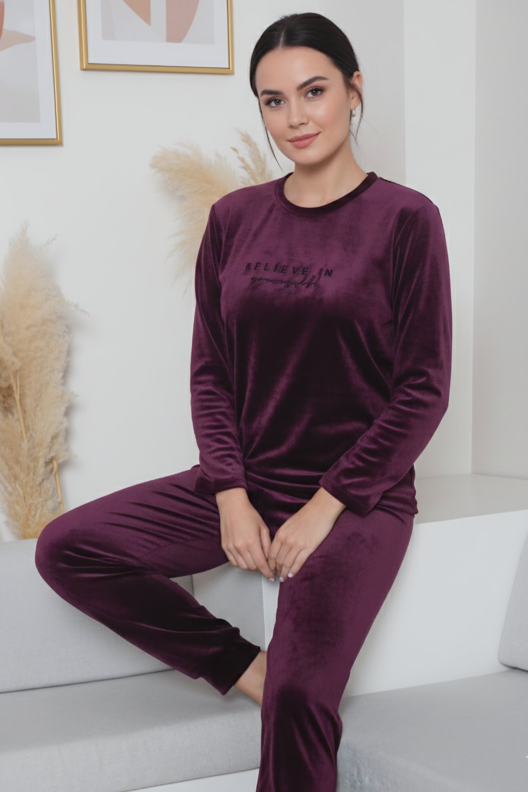 Дамска пижама от кадифе – мека, стилна и изключително удобна. Перфектен избор за комфорт и уют у дома през студените дни.