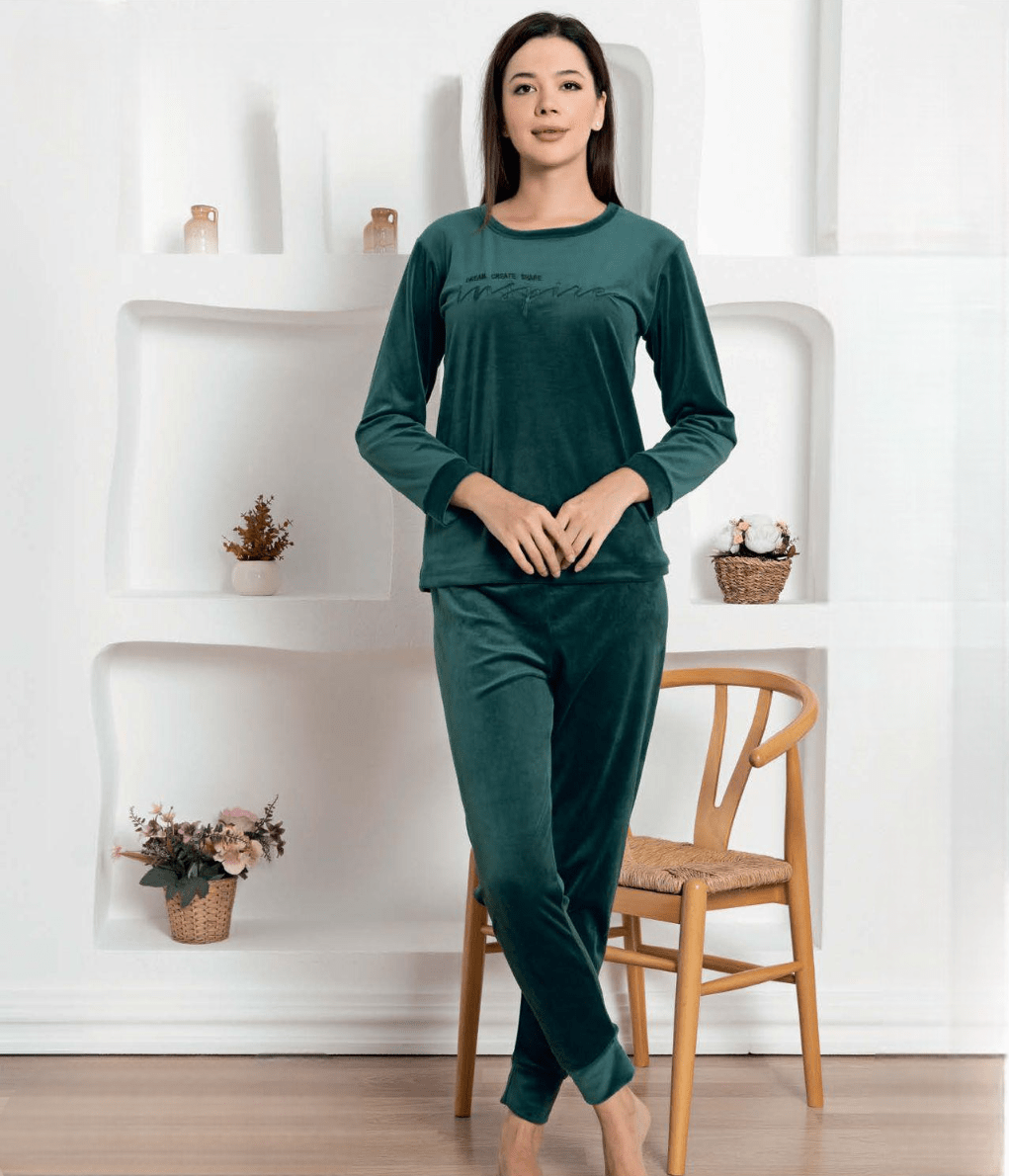 Дамска пижама от кадифе – мека, стилна и изключително удобна. Перфектен избор за комфорт и уют у дома през студените дни.
