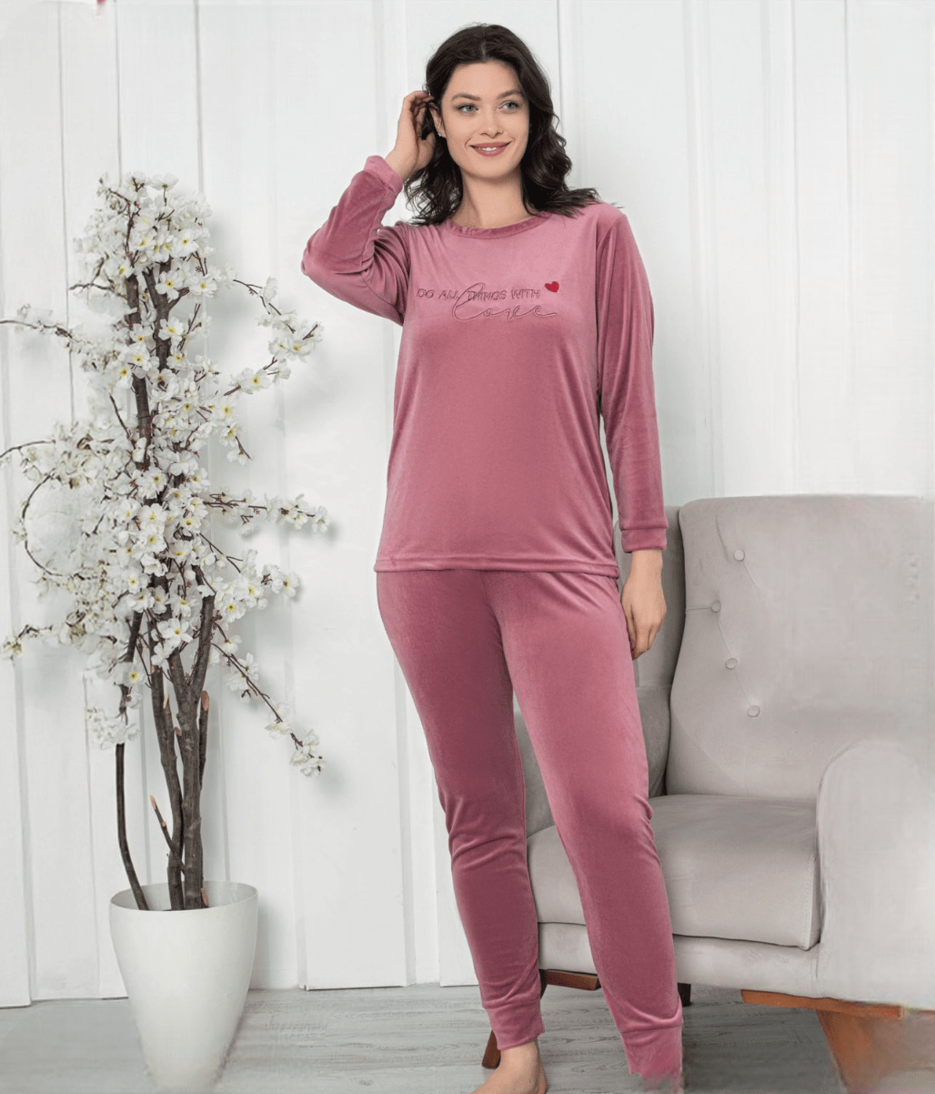 Дамска пижама от кадифе – мека, стилна и изключително удобна. Перфектен избор за комфорт и уют у дома през студените дни.