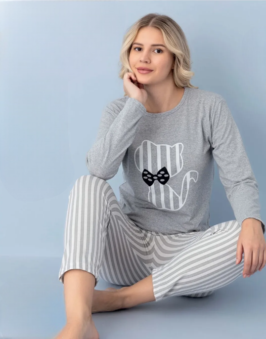 Дамска пижама от 100% памук, създадена за жени, които ценят комфорта и практичността. Благодарение на естествената материя, пижамата е мека и нежна към кожата, позволява свободно движение и осигурява спокоен сън.
