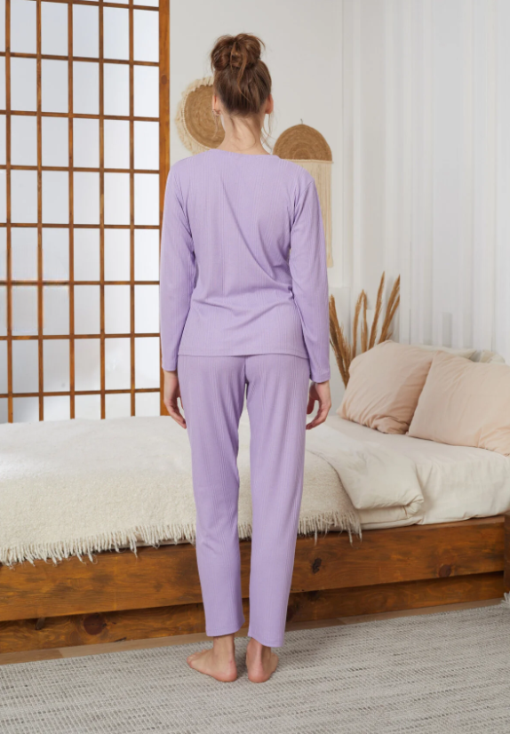 Дамска памучна пижама в лилаво. Мека, удобна и дишаща материя за комфортен сън.