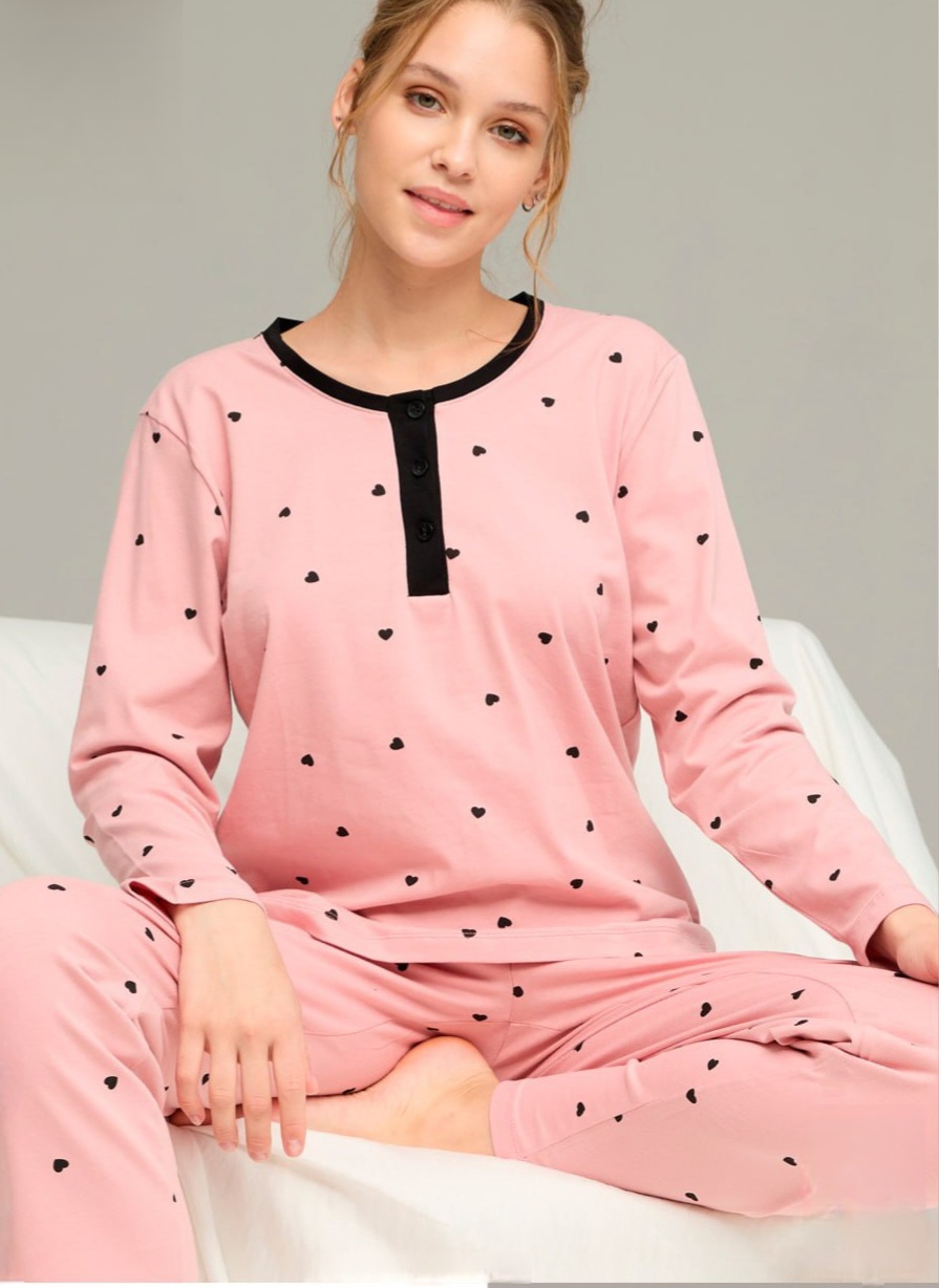 Дамска пижама . Изработени от висококачествена материя с 95% памук и 5% ликра, те са едновременно удобни, еластични и приятни на допир.