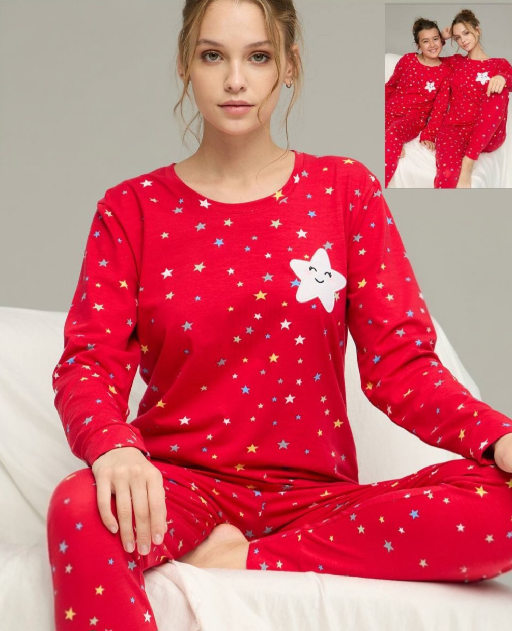 Дамска памучна пижама с весел десен. Мека, удобна и дишаща материя за комфортен сън.