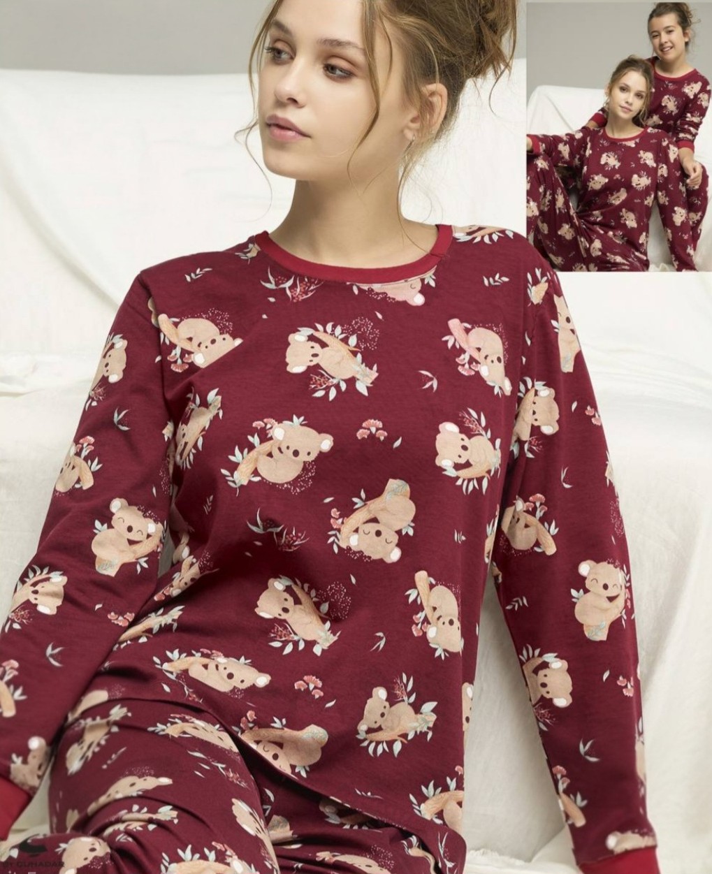 Дамска памучна пижама с весел десен. Мека, удобна и дишаща материя за комфортен сън.