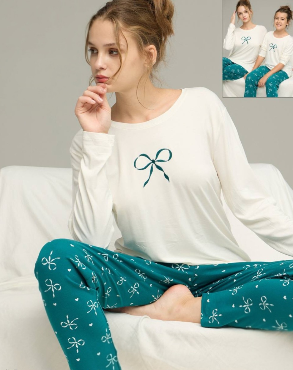 ✨ Дизайн: горнището е с дълъг ръкав, а долнището е с дълъг панталон с десен, без маншети.