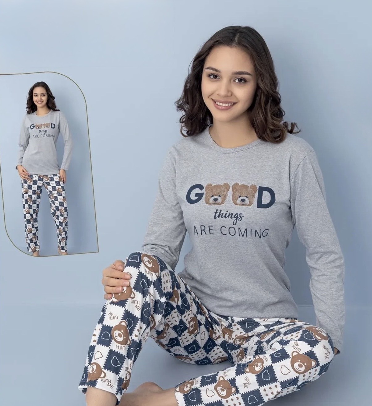 Моделът включва блуза с дълъг ръкав и панталон. Подходяща е за носене през цялата година – през зимата ще ви топли, а през пролетта и есента ще ви носи лекота и удобство.