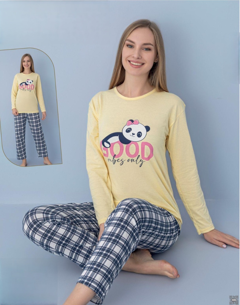 Дамска пижама от 100% памук, създадена за жени, които ценят комфорта и практичността. Благодарение на естествената материя, пижамата е мека и нежна към кожата, позволява свободно движение и осигурява спокоен сън.