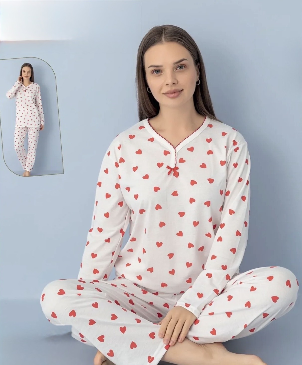 Моделът включва блуза с дълъг ръкав и панталон без маншети. Подходяща е за носене през цялата година – през зимата ще ви топли, а през пролетта и есента ще ви носи лекота и удобство.