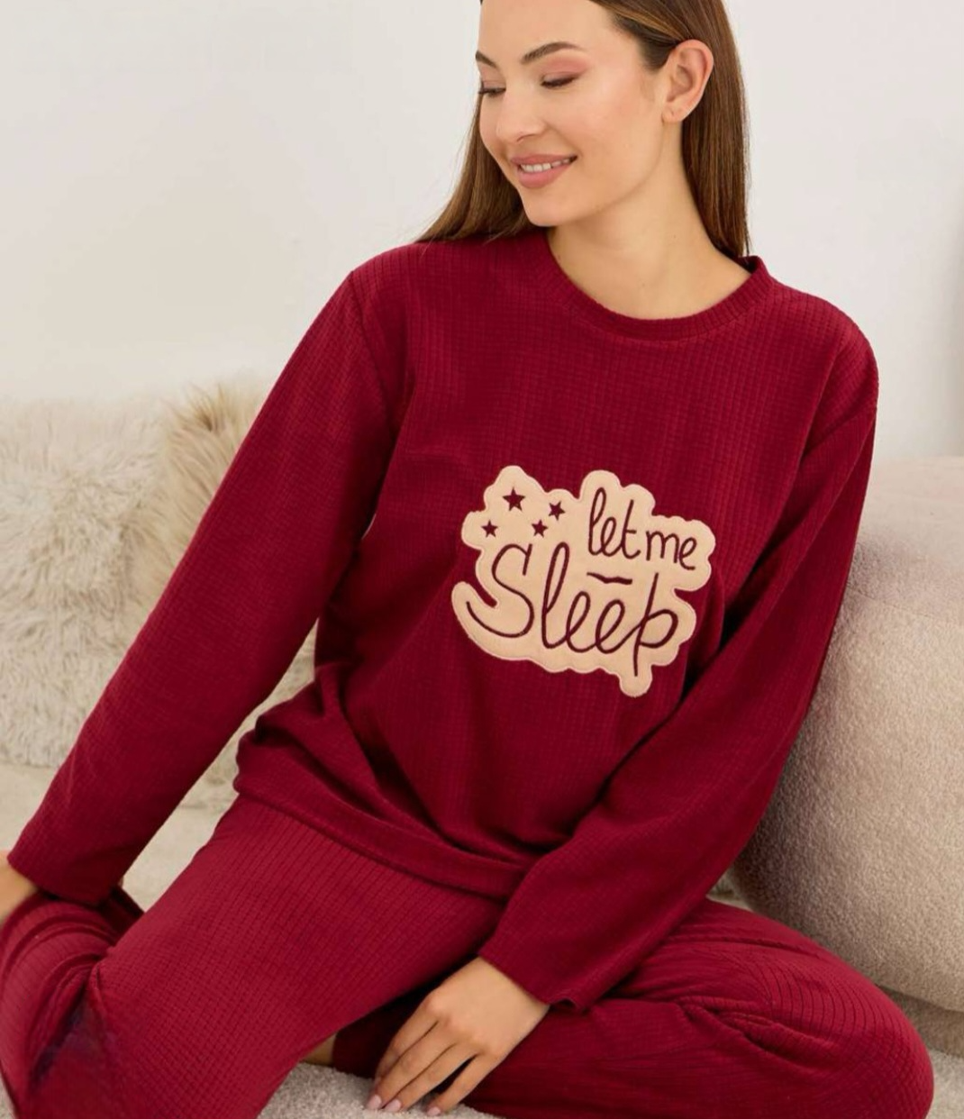 Дамска поларена пижама тип вафла от две части – създадена за уют и комфорт през студените дни.