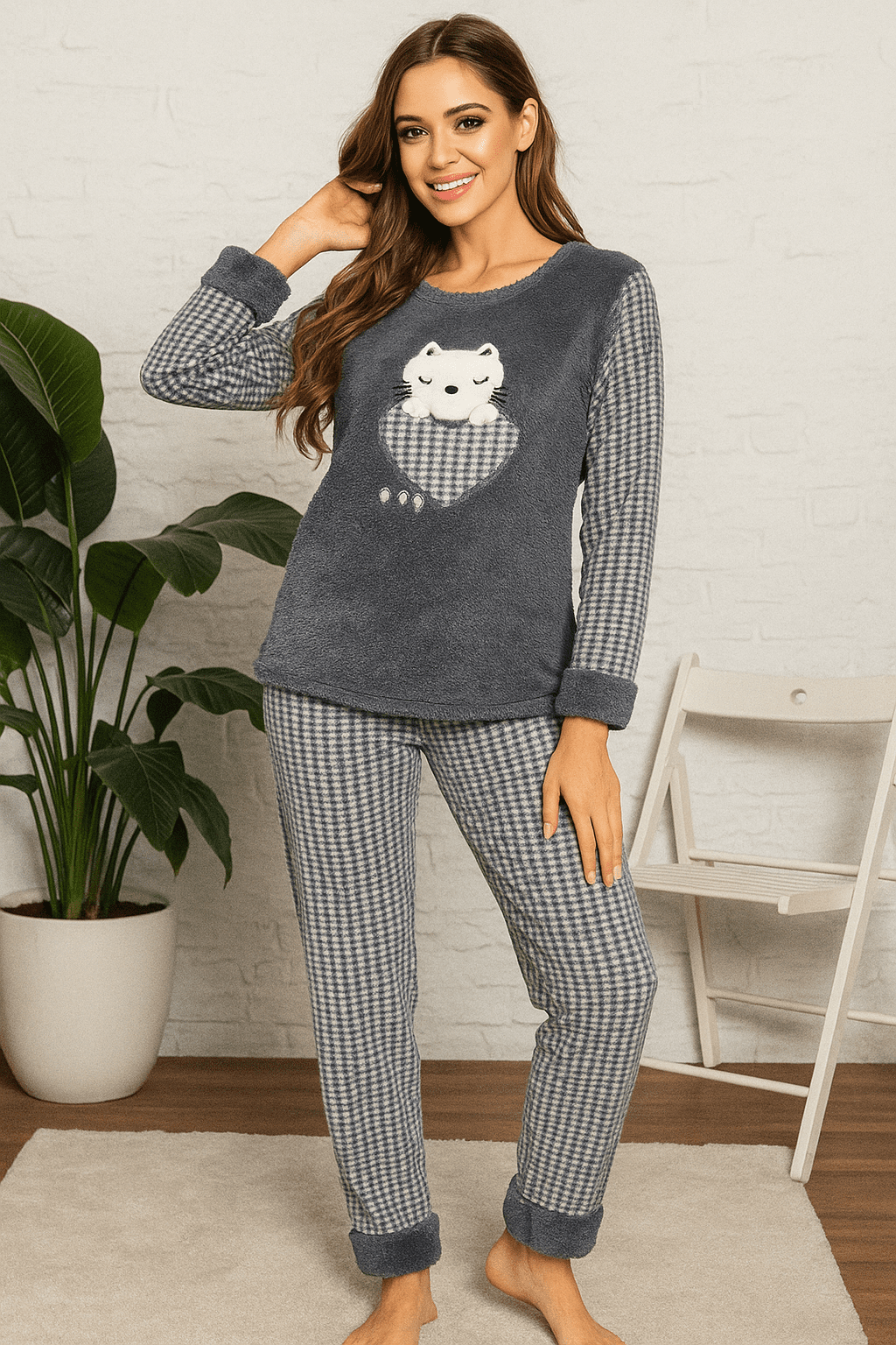 Топла и мека дамска поларена пижама – идеална за студените зимни вечери. Удобна, сладка и комфортна – перфектният избор за уют у дома. 🩶