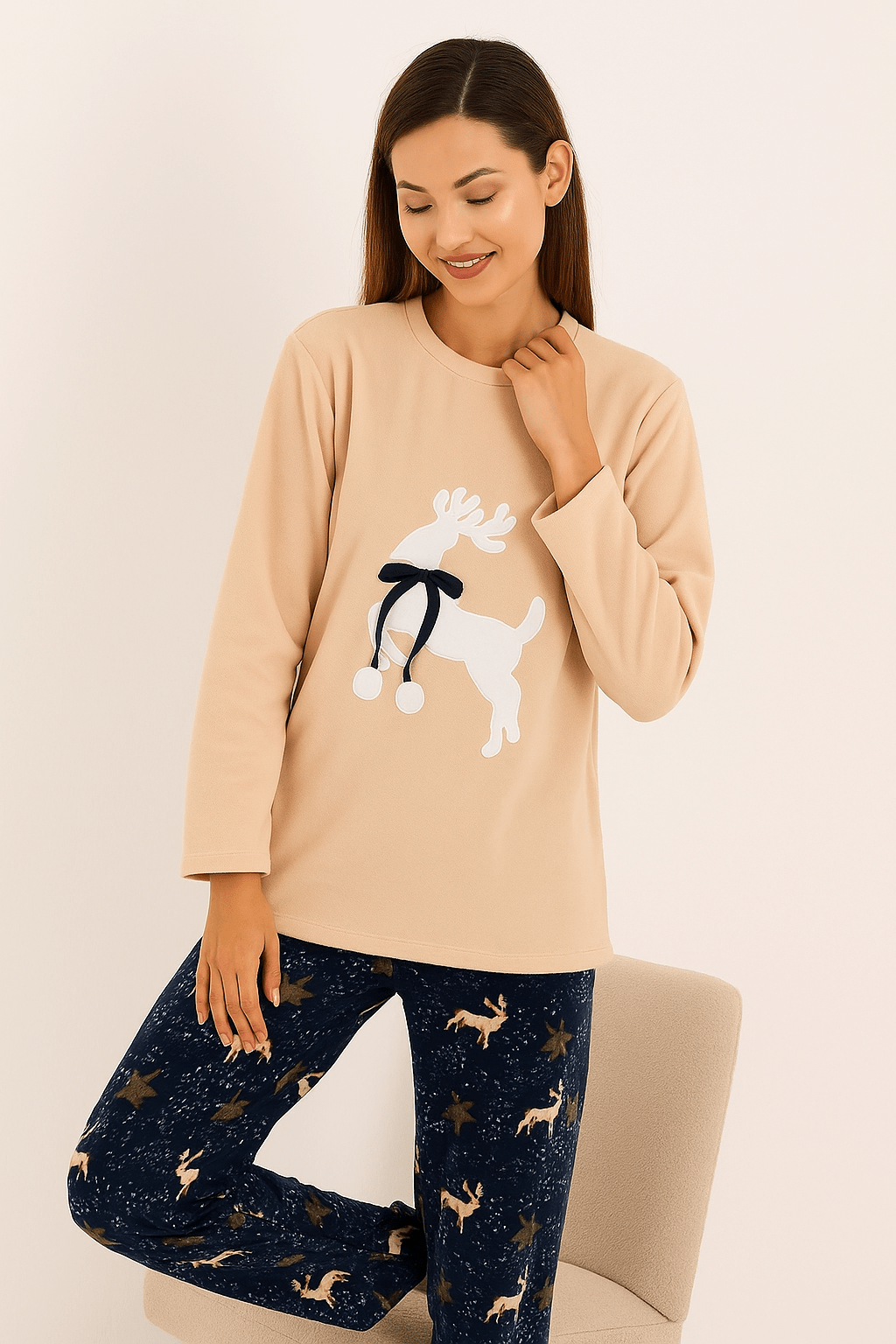 Дамска поларена пижама от две части с бродерия /апликацив/ – създадена за уют и комфорт през студените дни.