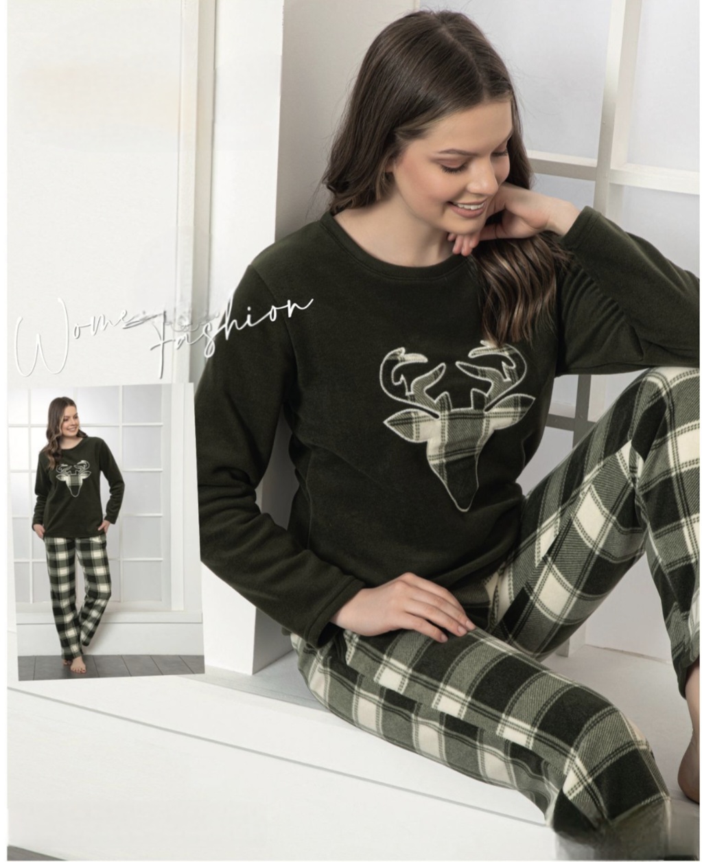 Топла дамска пижама в две части . Комбинация от полар. Апликация – елен. Долнище без маншет.