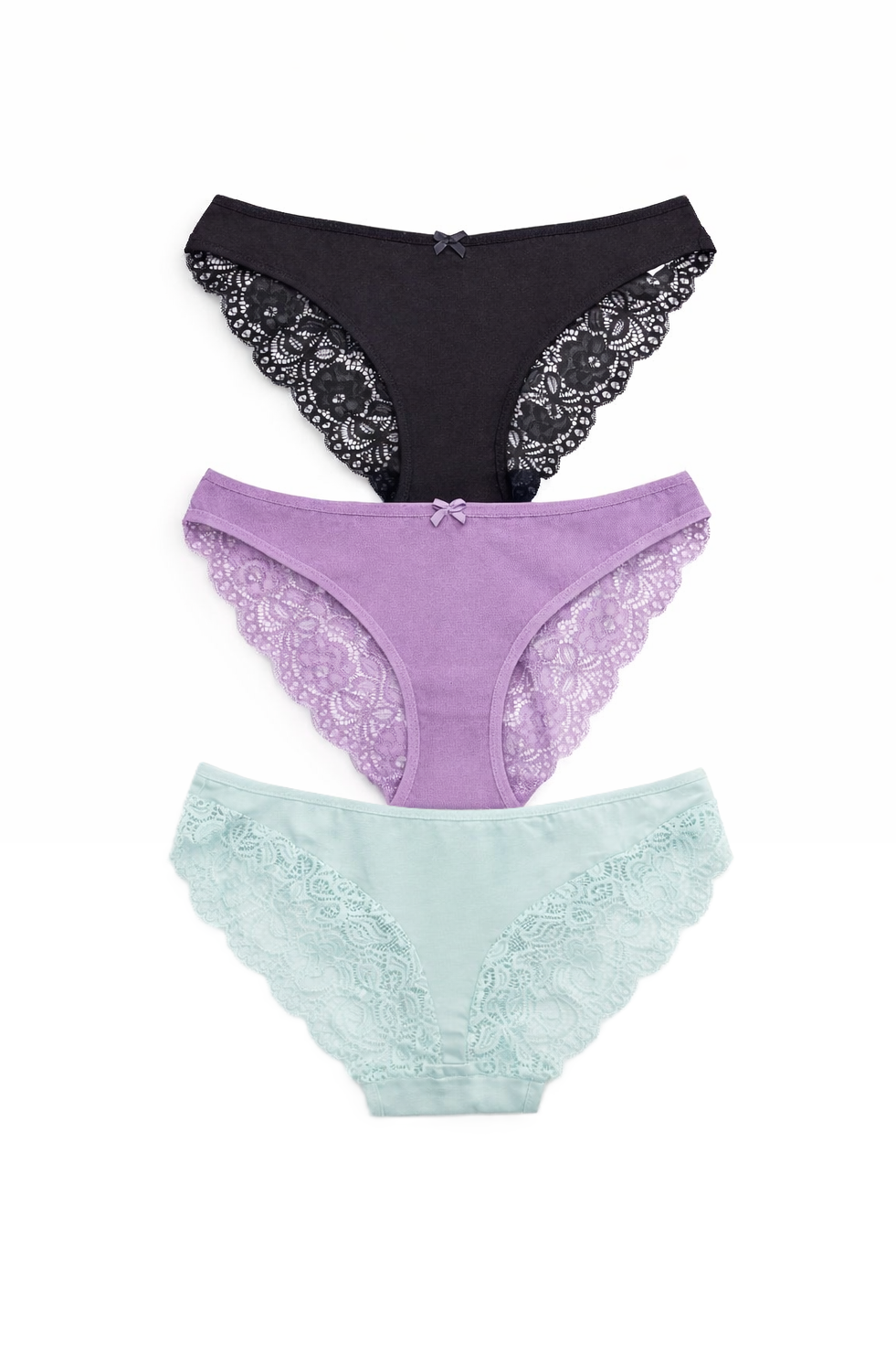 Памучни дамски бикини с дантела -3 броя в опаковка.