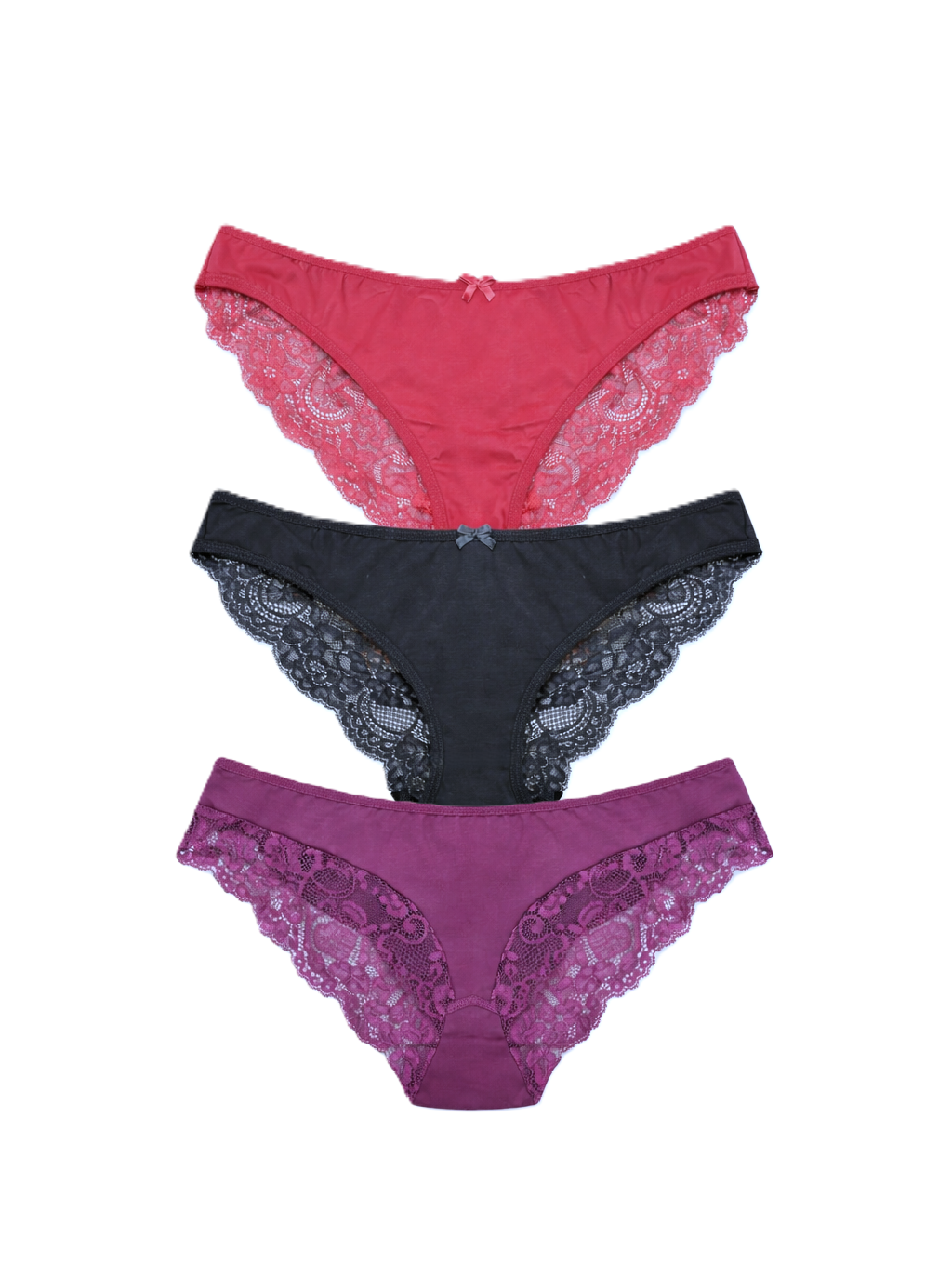 Памучни дамски бикини с дантела -3 броя в опаковка.