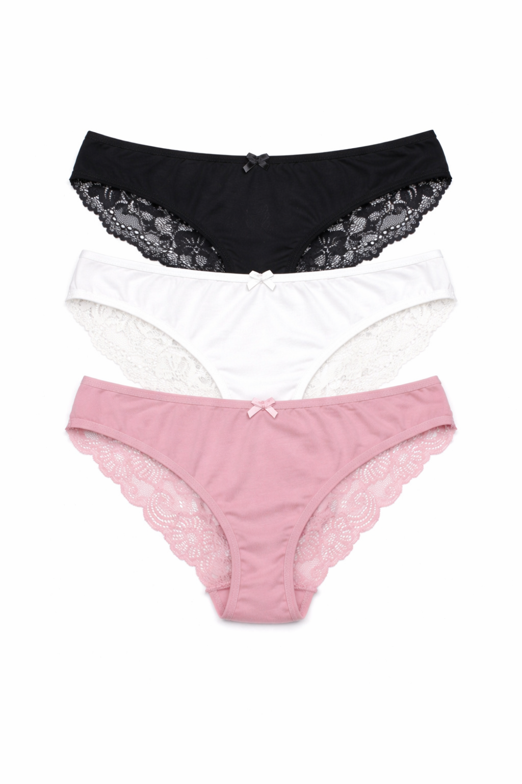 Памучни дамски бикини с дантела -3 броя в опаковка.