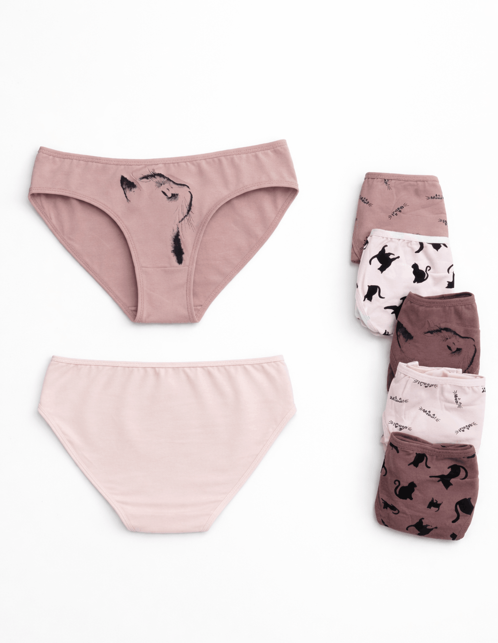 Изработени от висококачествена материя, тези бикини предлагат отлична мекота, еластичност и дишаемост, идеални за целодневно носене. Комплектът включва седем чифта в различни десини и щампи.