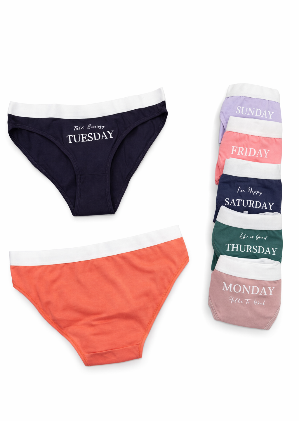Изработени от висококачествена материя, тези бикини предлагат отлична мекота, еластичност и дишаемост, идеални за целодневно носене. Комплектът включва седем чифта в различни десини и щампи.