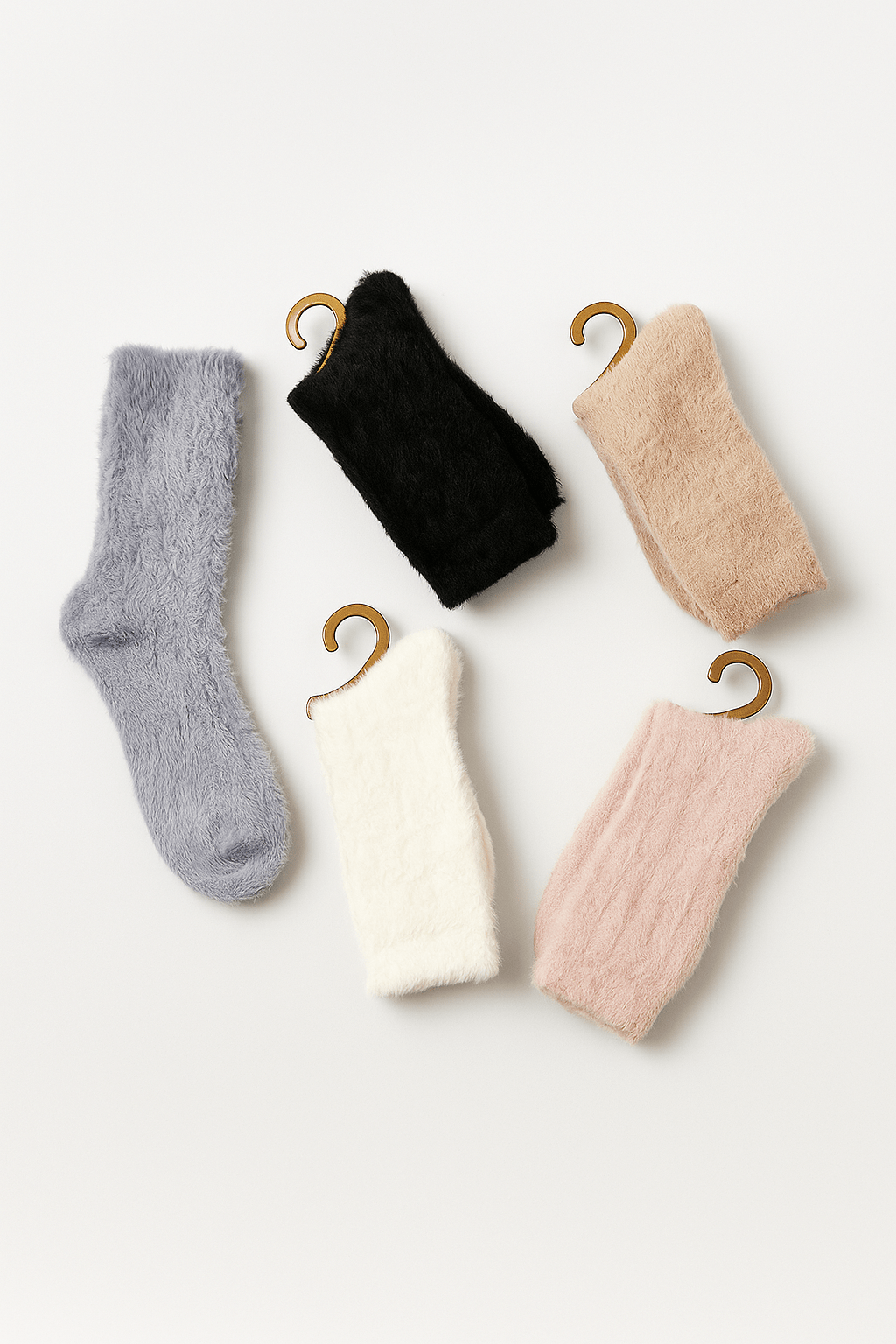 Потопи се в усещането за лукс с нашия комплект от 5 чифта кашмирени чорапи. Тези чорапи осигуряват изключителна мекота, топлина и комфорт през студените дни. Подходящи са както за ежедневие, така и за подарък – защото комфортът никога не излиза от мода.