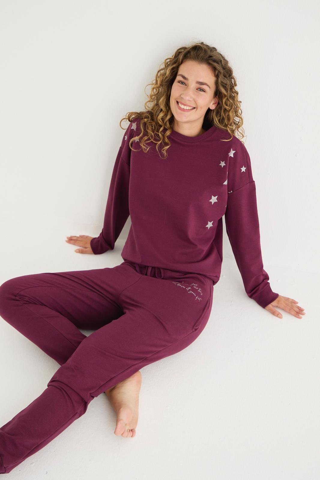 Горнище: Дълъг ръкав, свободна кройка, обло деколте, декорация – брокатени звезди.