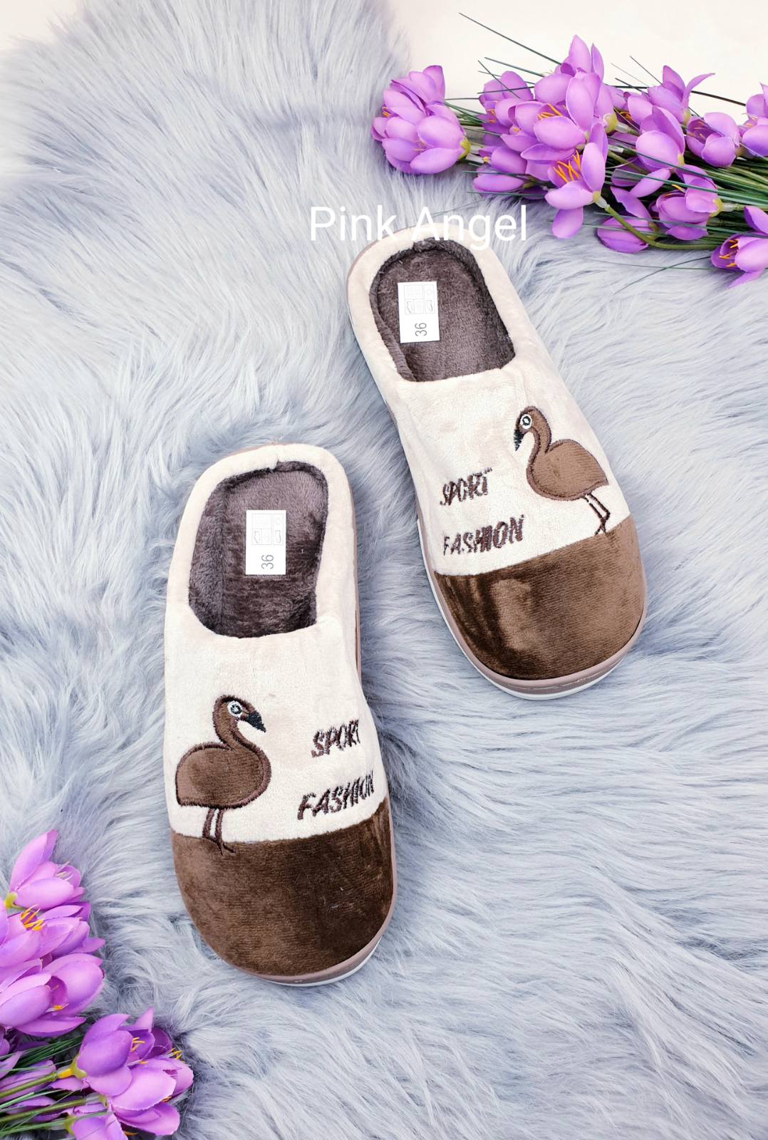 Дамски плюшени пантофи за вкъщи с неплъзгаща се подметка.