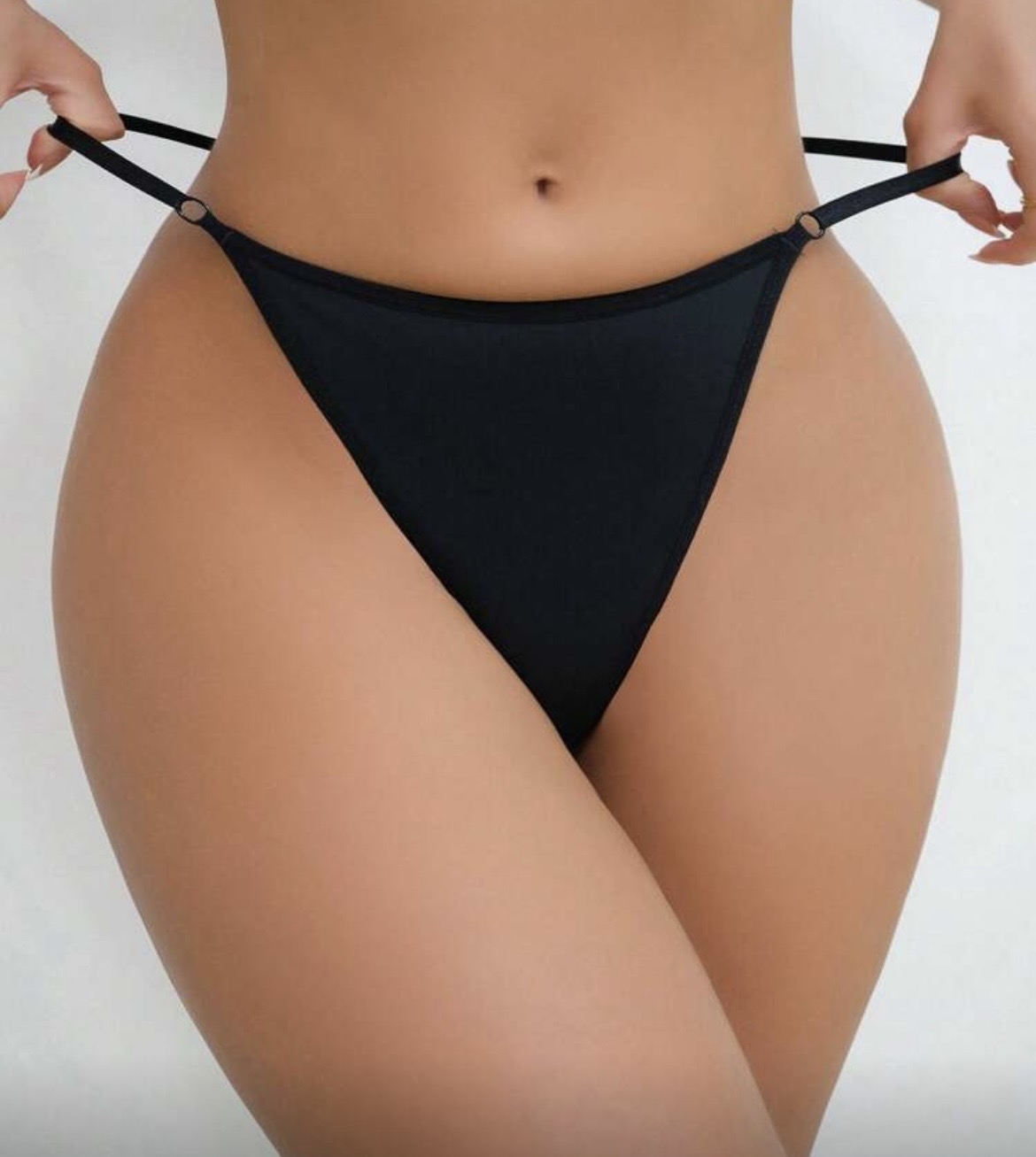 Дамски еротични прашки. Подчертайте своята женственост и съблазън с тези елегантни черни прашки, декорирани със златиста верижка и блестящи букви BABY.