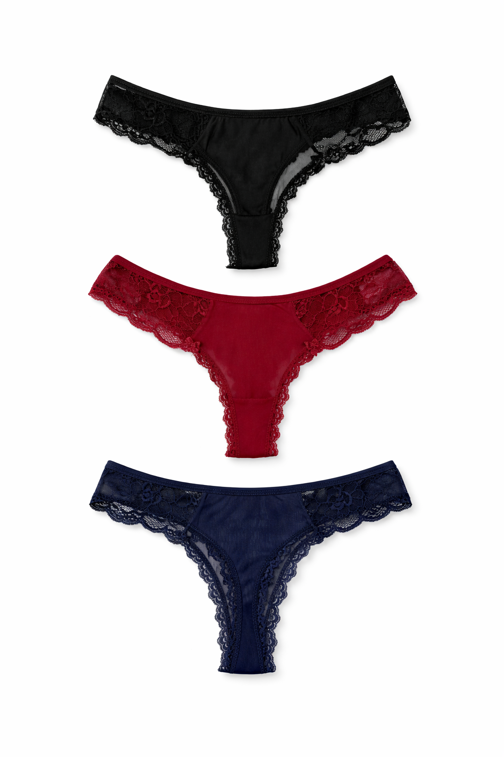 Дамски прашки -3 броя в опаковка. С мека дантела и тюл.