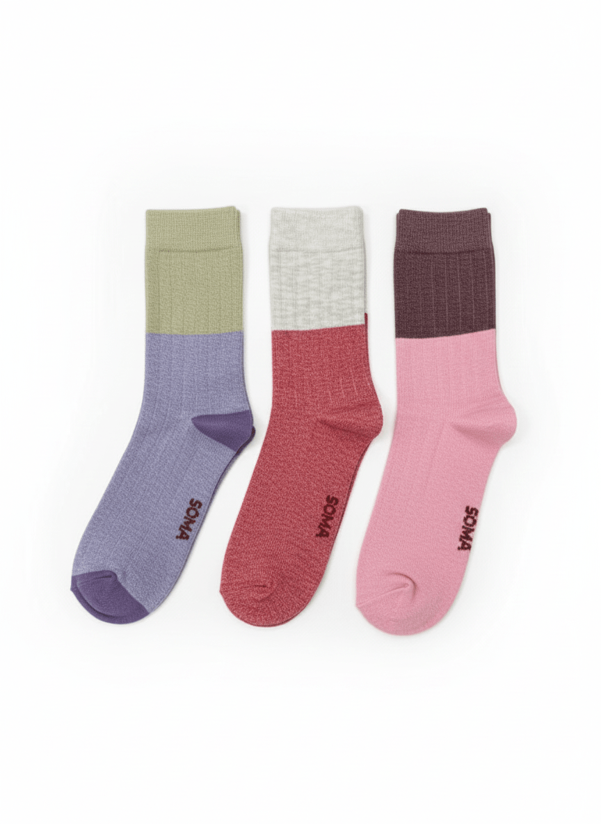 Дамски памучни чорапи – комплект от 3 чифта. Изработени от мека и дишаща материя, те осигуряват отлична защита и комфорт през целия ден. Подходящи са както за ежедневна употреба, така и за спорт или работа.