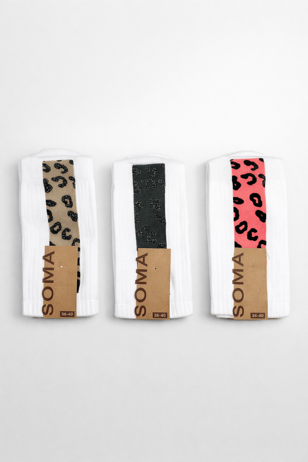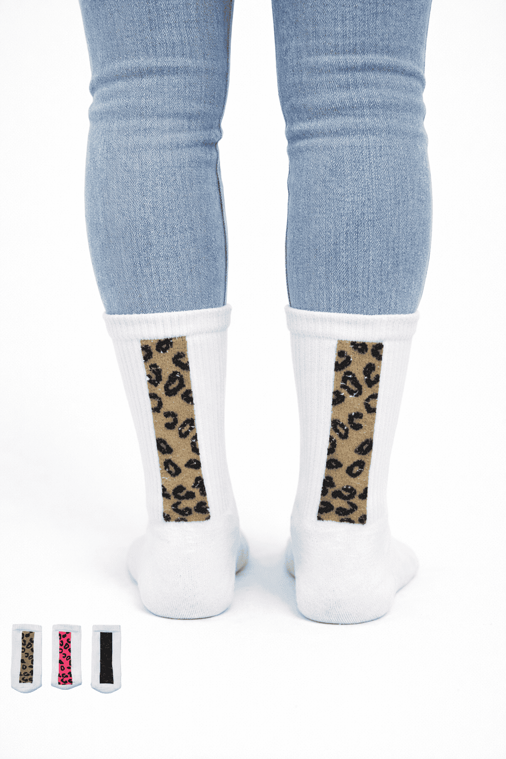 Изработени от мека и приятна на допир материя, чорапите осигуряват удобство през целия ден. Декорирани с цветен акцент с модерен леопардов мотив.