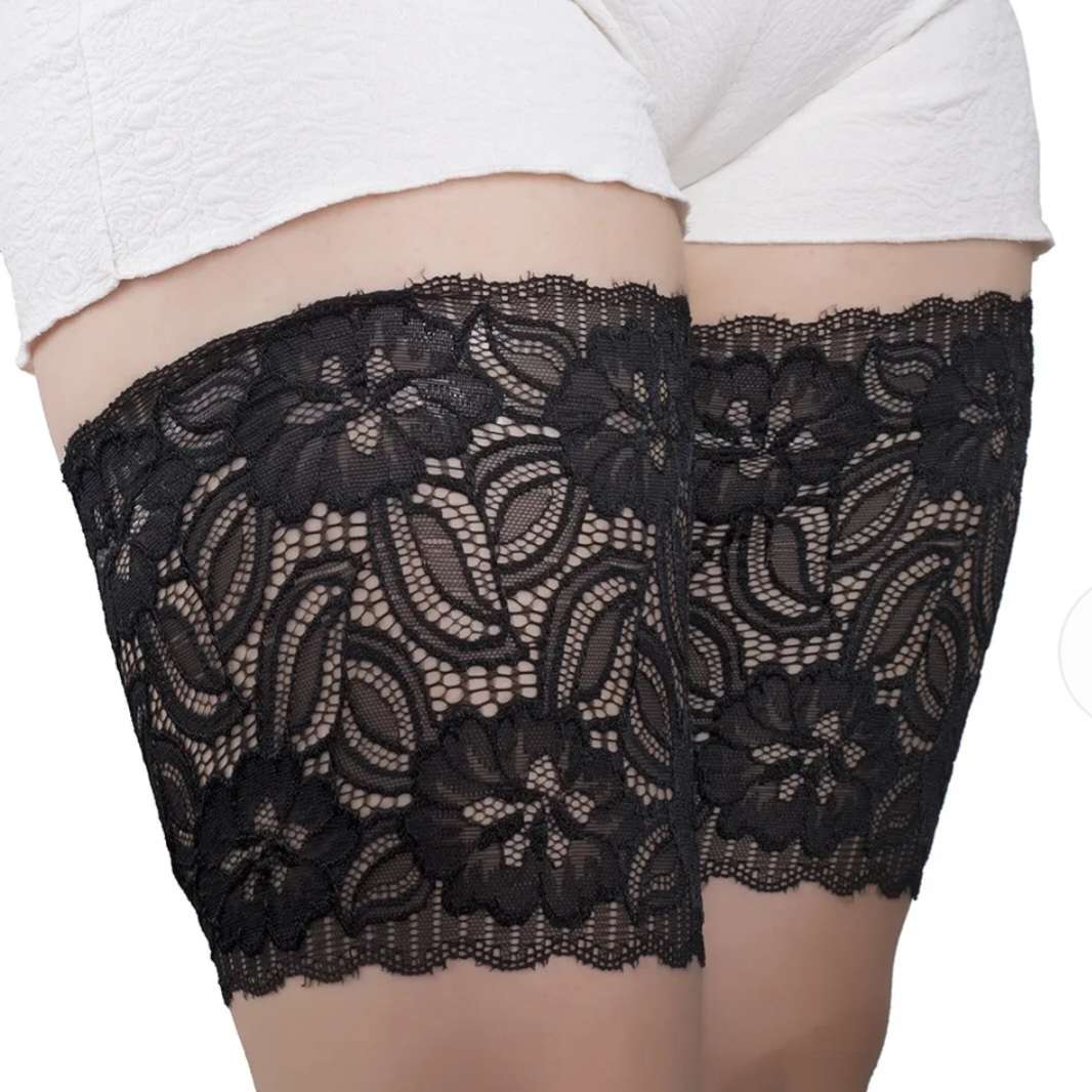 Дантелена лента против прoтриване на бедрата със силиконови ленти около 1см в горната и долната част, за по добра фиксация и за да не се свличат. Подходящо за дамите, които обичат да носят рокли и поли през лятото, но имат проблем с протриването.