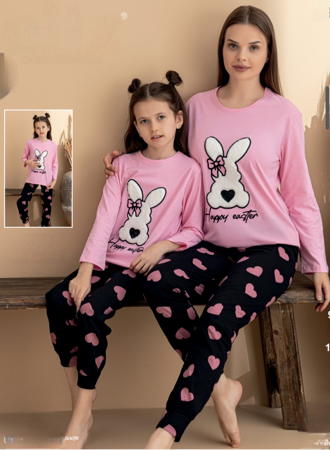 Уютна детска пижама от колекцията „Мама и аз“ .Тези модели са създадени за специални моменти у дома – когато майка и дъщеря могат да се насладят на уют, мекота и стил заедно. Състояща се от горна част с дълъг ръкав и 3D принт, комбинирана с дълъг панталон с маншет.