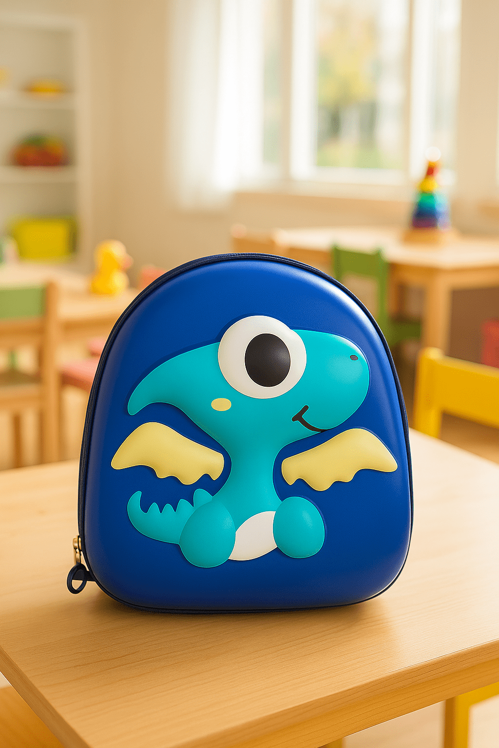 Детска раница с твърда предна част. Идеална за детска градина, ясли или разходки. Цветният 3D дизайн с драконче прави раницата атрактивна. Раницата разполага с отделение с цип за удобно подреждане на принадлежности и регулируеми меки презрамки за максимален комфорт. Твърдата предна част предпазва съдържанието от удари и смачкване. Подходяща за момчета.