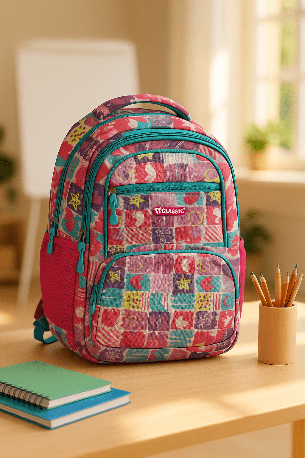 Детска раница с цветен дизайн – удобна и практична за училище. Ярка и стилна детска раница с весели шарки. Изработена от издръжлив материал, с няколко отделения с цип за по-добра организация на учебници, тетрадки и аксесоари. Страничните мрежести джобове са идеални за бутилка вода или дребни вещи.