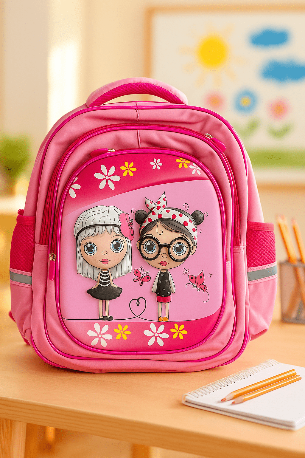 Удобна и практична детска раница с впечатляваща 3D предна част с дизайн на момичета. Подходяща за училище и детска градина, тя разполага с три отделения с цип за учебници, тетрадки и аксесоари, както и странични мрежести джобове за бутилка или дребни вещи. За по-голяма безопасност в тъмната част на деня раницата е оборудвана със светлоотразителни ленти по дръжките и джобовете. Подходяща за момичета.
