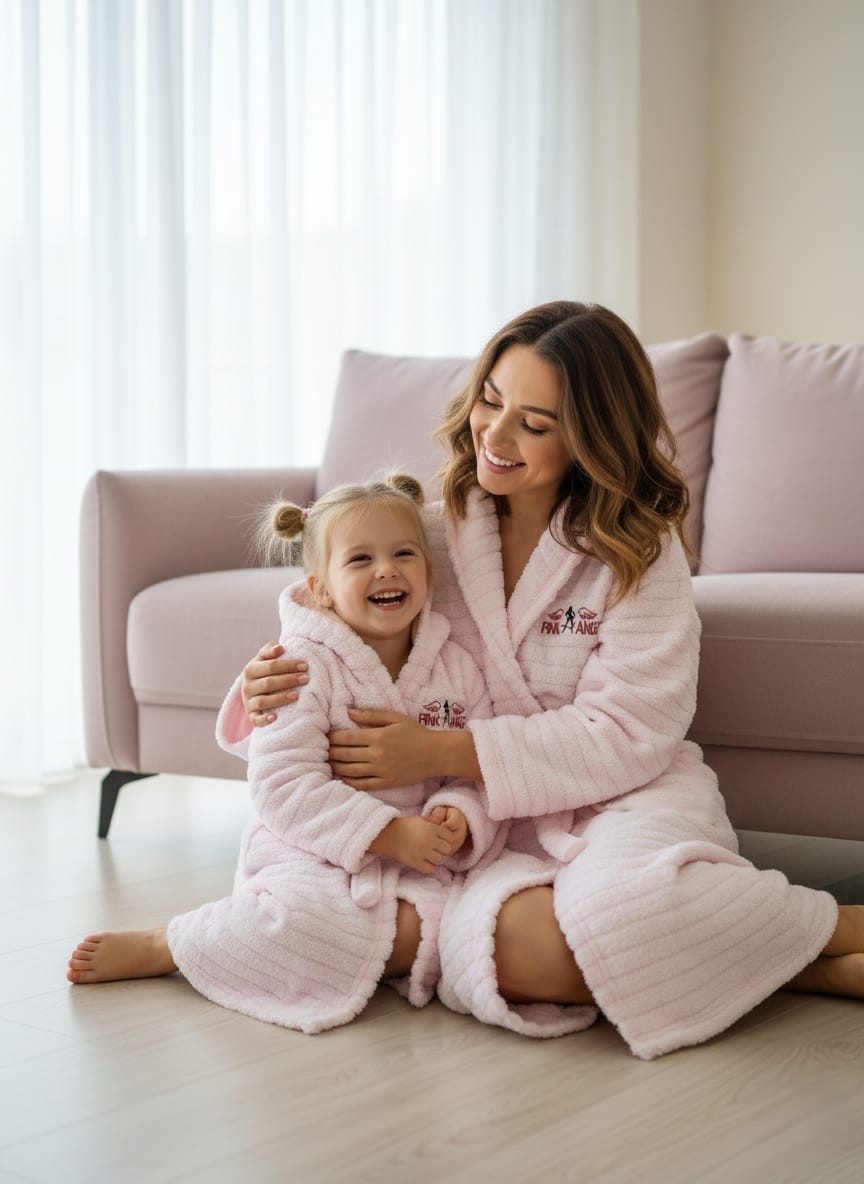 Уютен детски домашен халат “Pink Angel” от колекцията „Мама и аз“ – топлина и стил за споделени моменти у дома!