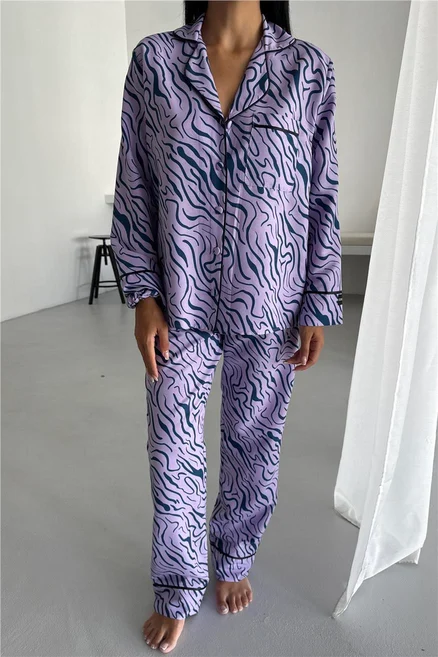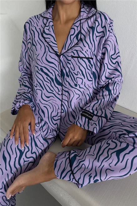 Сатенена пижама – луксозна, гладка и с нежен блясък. Подходяща за дами, които искат комфорт и изискано излъчване. Материята е лека, прохладна и деликатна към кожата.