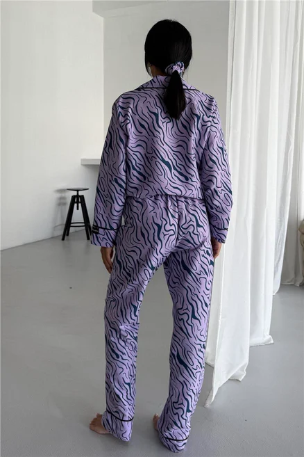 Пижама от сатинирана вискоза – практичен избор с матиран ефект. Устойчива, лесна за поддръжка и по-малко се мачка. Вискозата придава мекота и дишаемост, докато полиестерът осигурява издръжливост и форма.