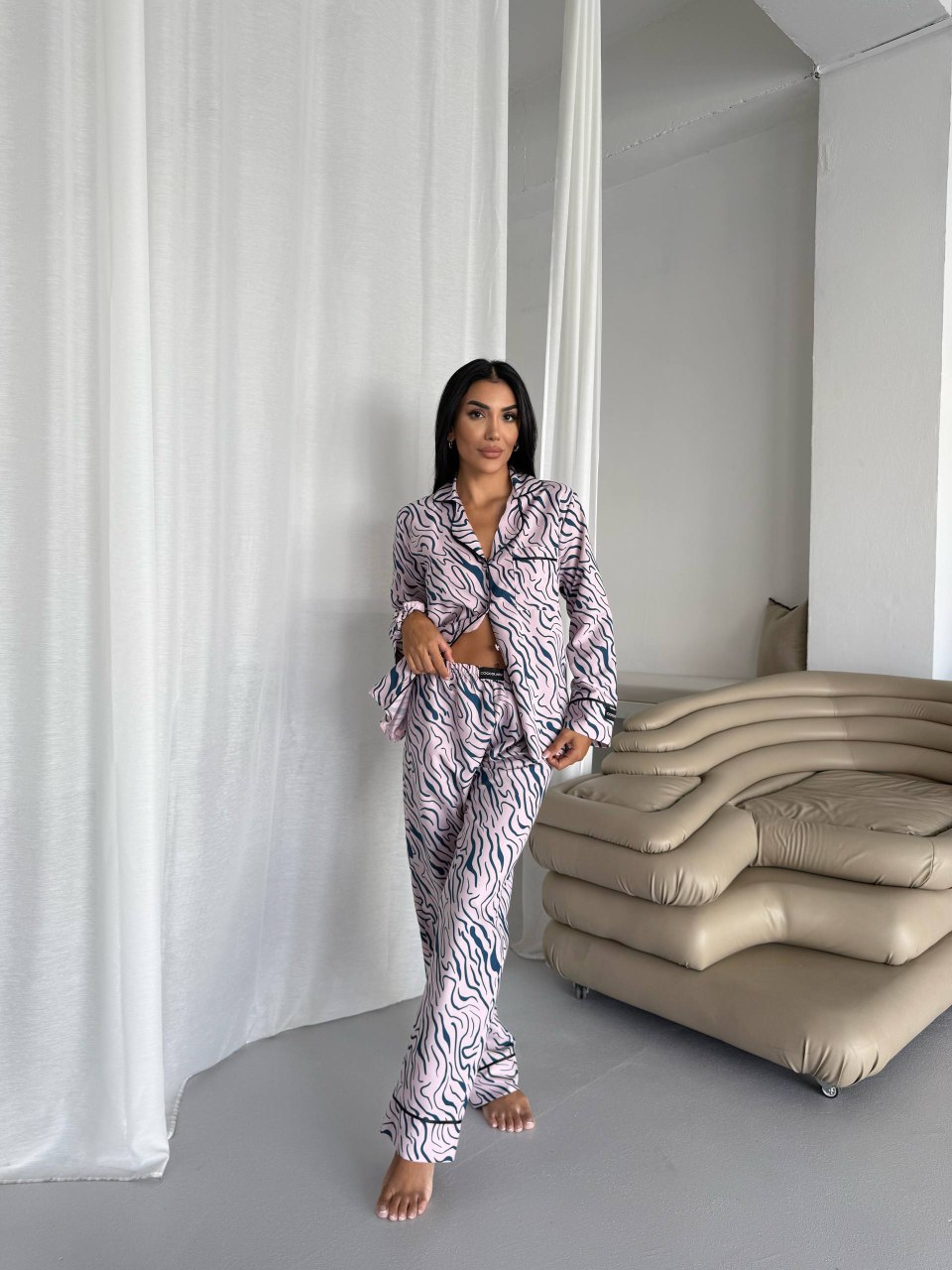 Сатенена пижама – луксозна, гладка и с нежен блясък. Подходяща за дами, които искат комфорт и изискано излъчване. Материята е лека, прохладна и деликатна към кожата.