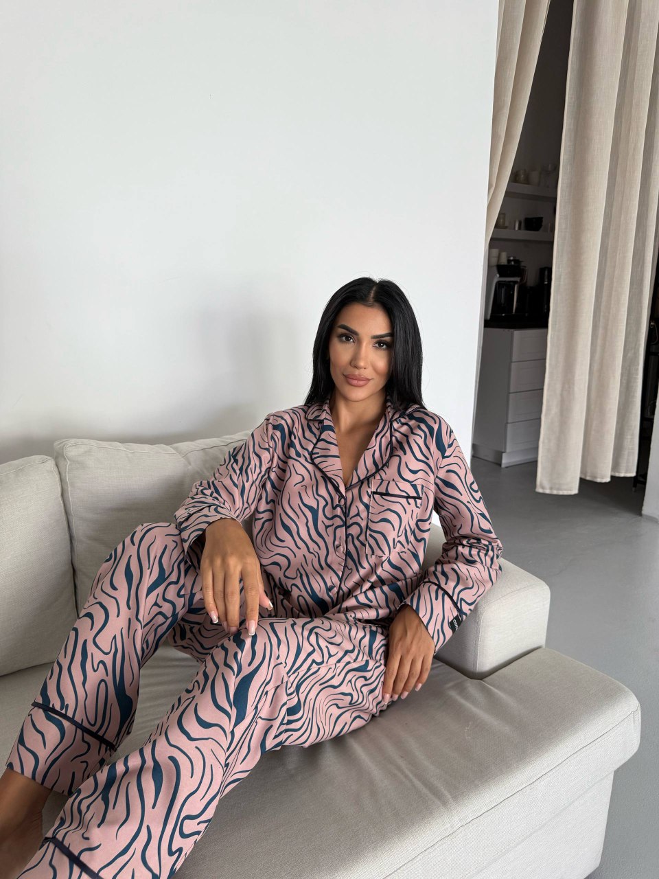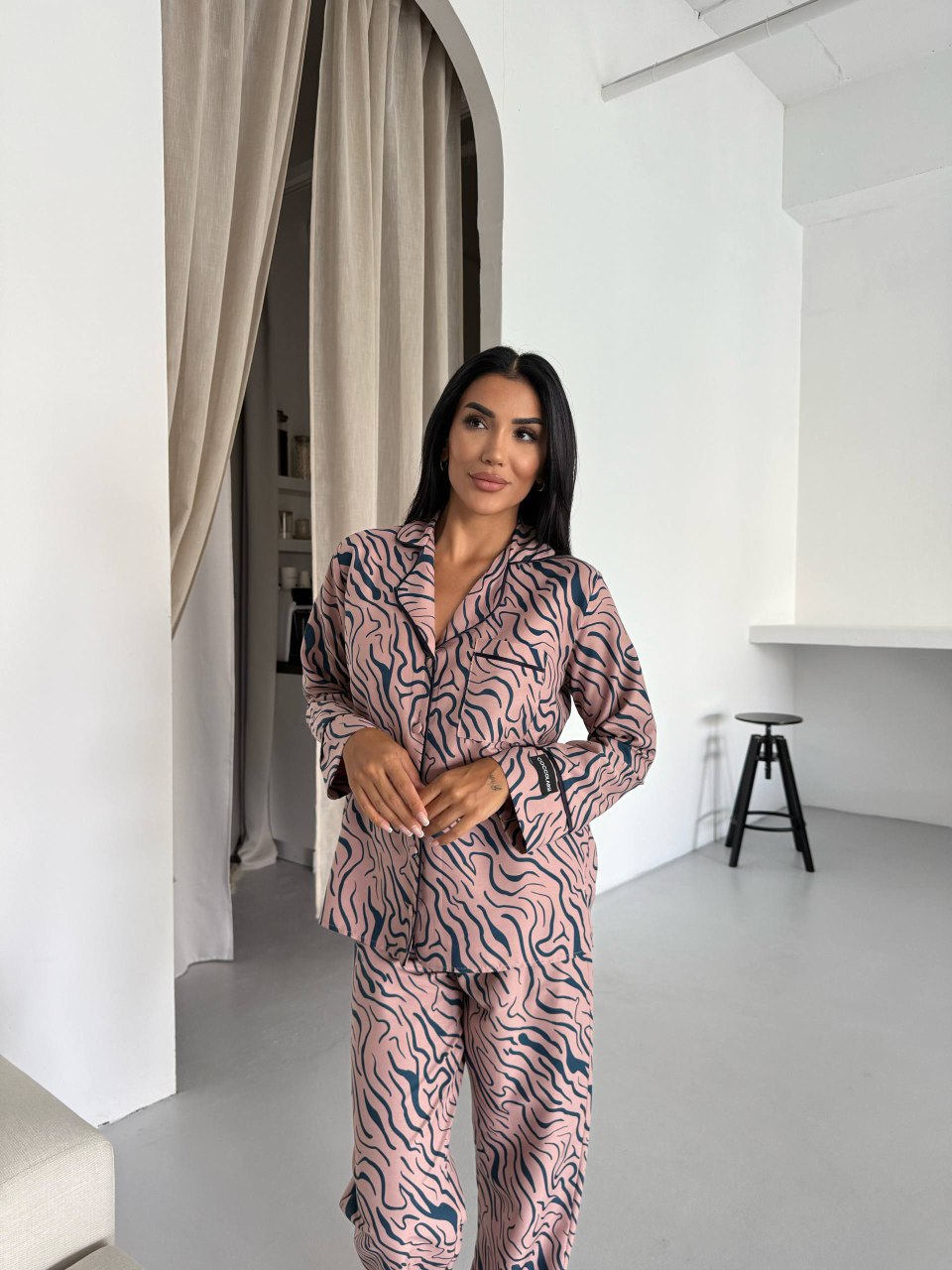 Сатенена пижама – луксозна, гладка и с нежен блясък. Подходяща за дами, които искат комфорт и изискано излъчване. Материята е лека, прохладна и деликатна към кожата.