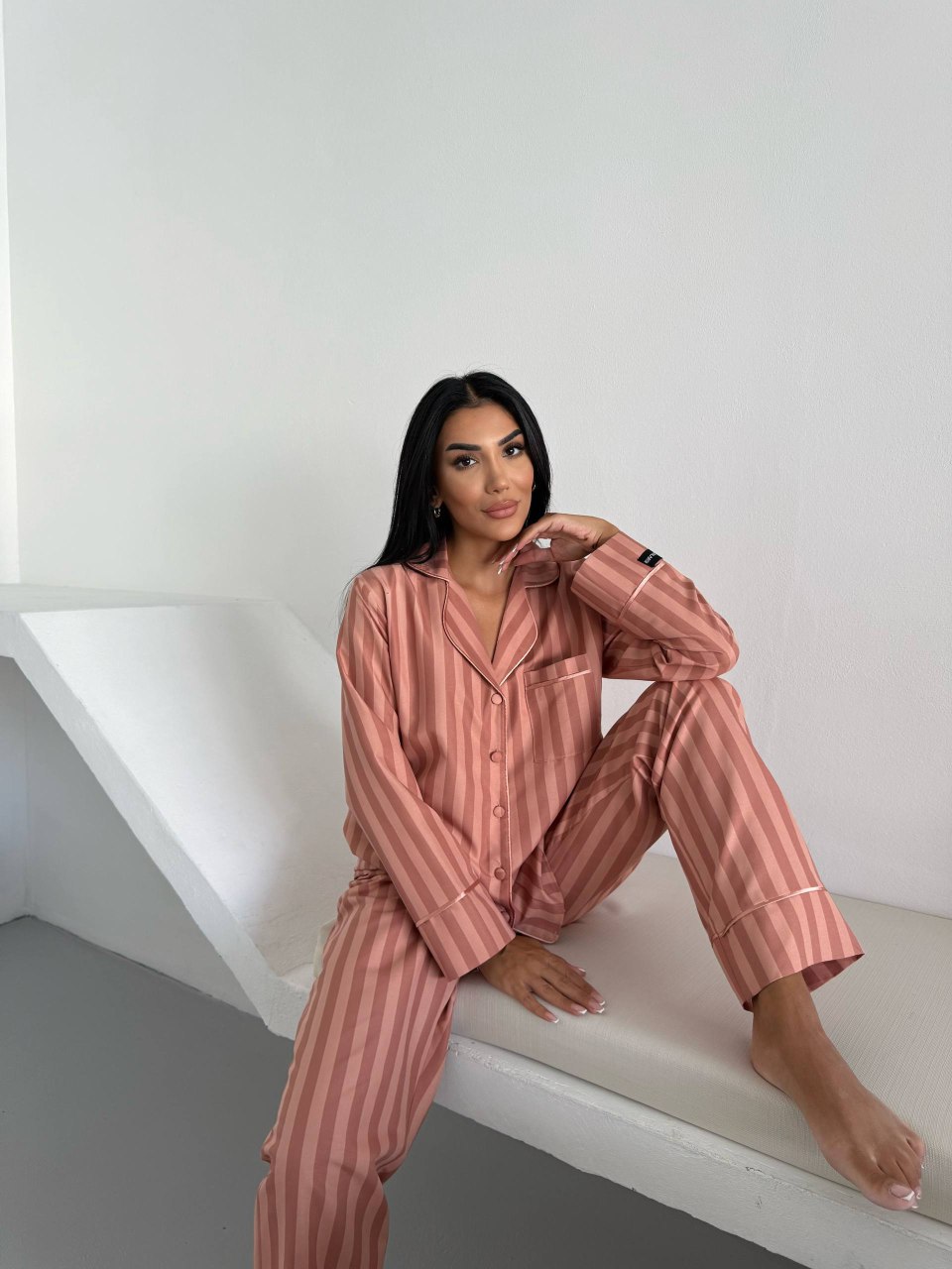 Сатенена пижама – луксозна, гладка и с нежен блясък. Подходяща за дами, които искат комфорт и изискано излъчване. Материята е лека, прохладна и деликатна към кожата.
