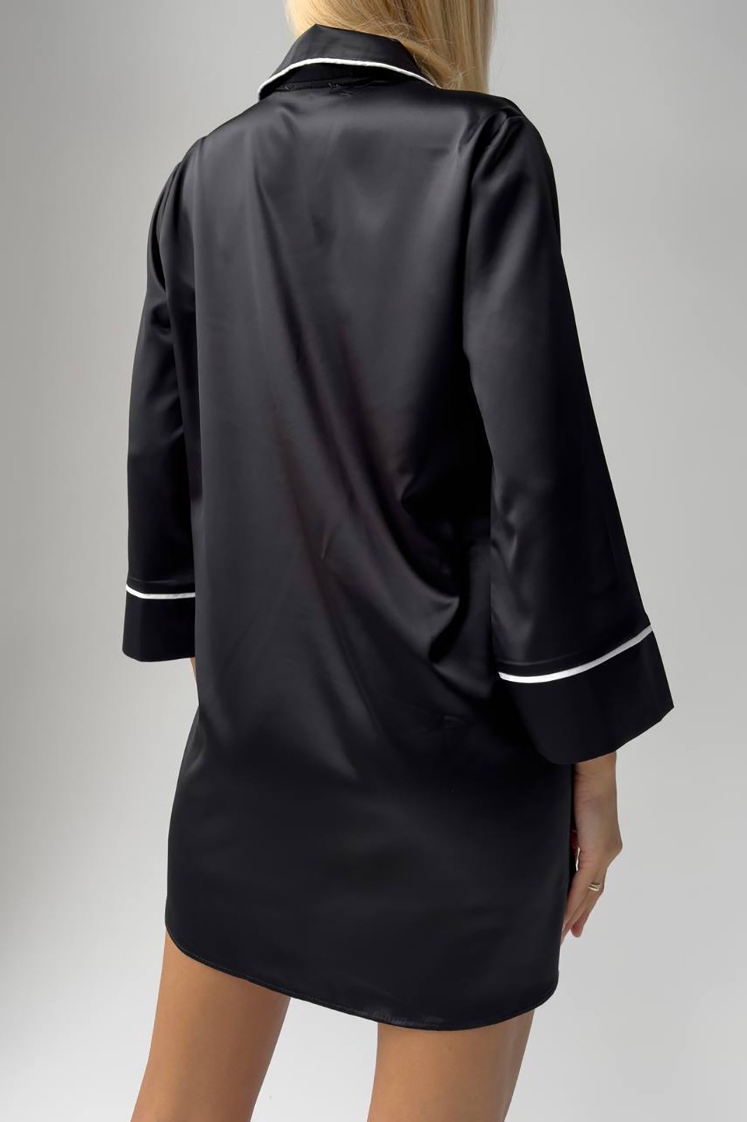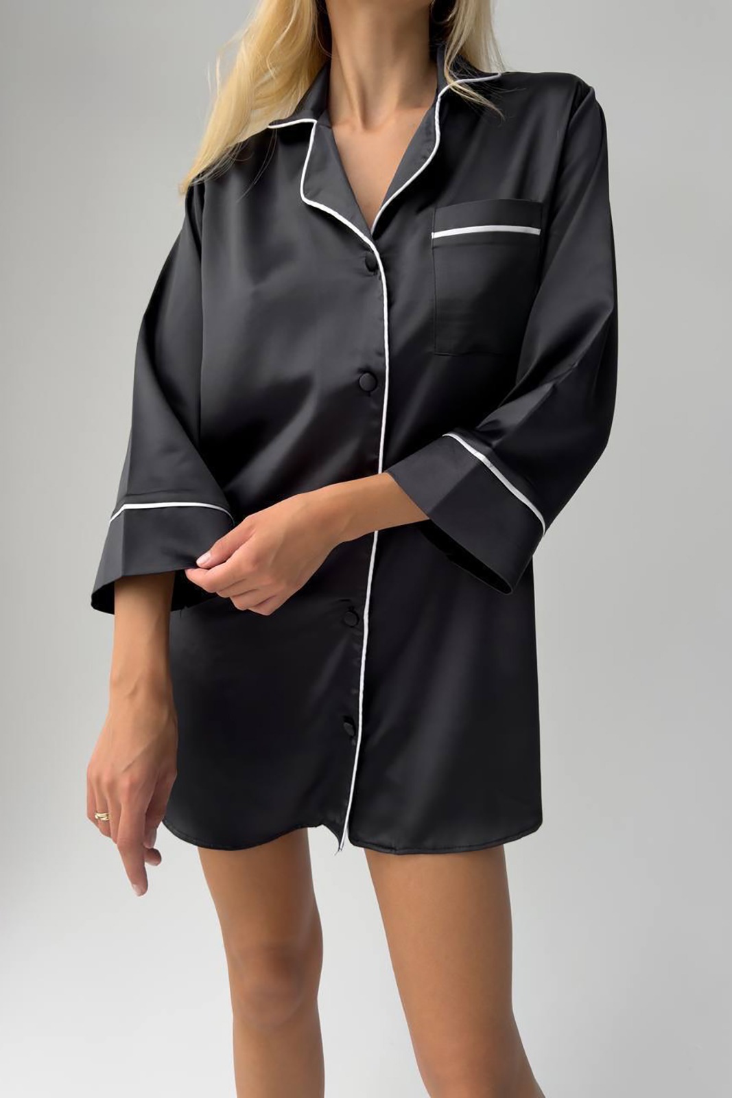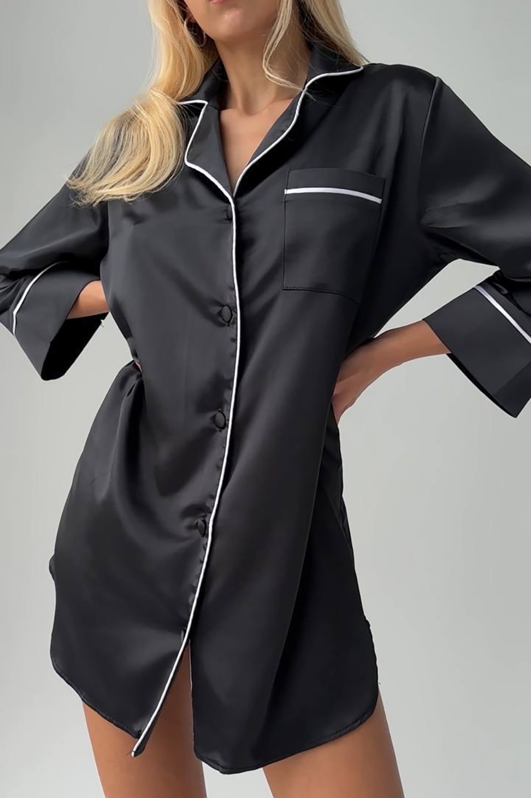Дамска сатенена нощница в черно с бели кантове – лукс, удобство и стил. Идеална за сън, релакс или подарък.