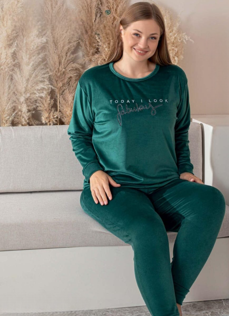 Открийте перфектния баланс между комфорт и елегантност с нашата дамска кадифена пижама. Изработена от висококачествено, меко на допир кадифе, тя осигурява топлина и уют през студените вечери. Горната част е с изчистен дизайн и надпис, а долната част – с удобна кройка и ластичен колан (долнището е с маншети). Идеален избор за стилен домашен комфорт или подарък за специален човек.